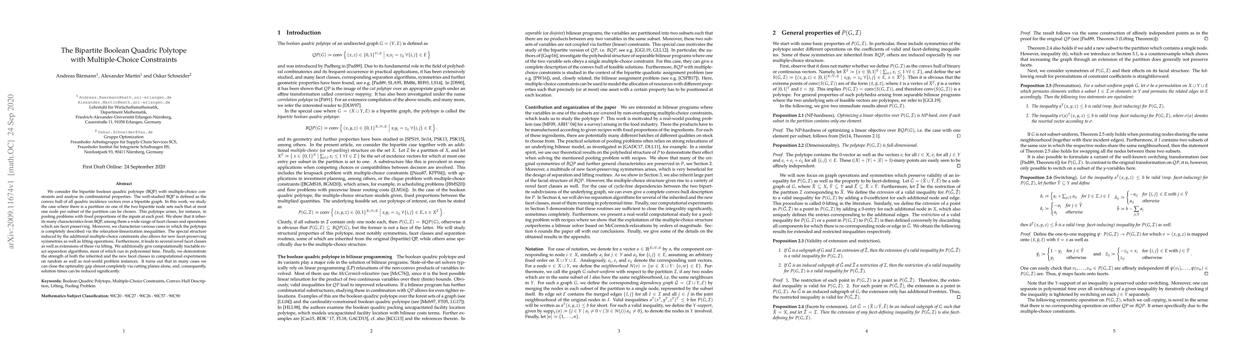 Researchers analyze a polytope with multiple-choice constraints on a bipartite graph, finding new facet classes, lifting operations, and computationally tractable separation algorithms that improve solution times.