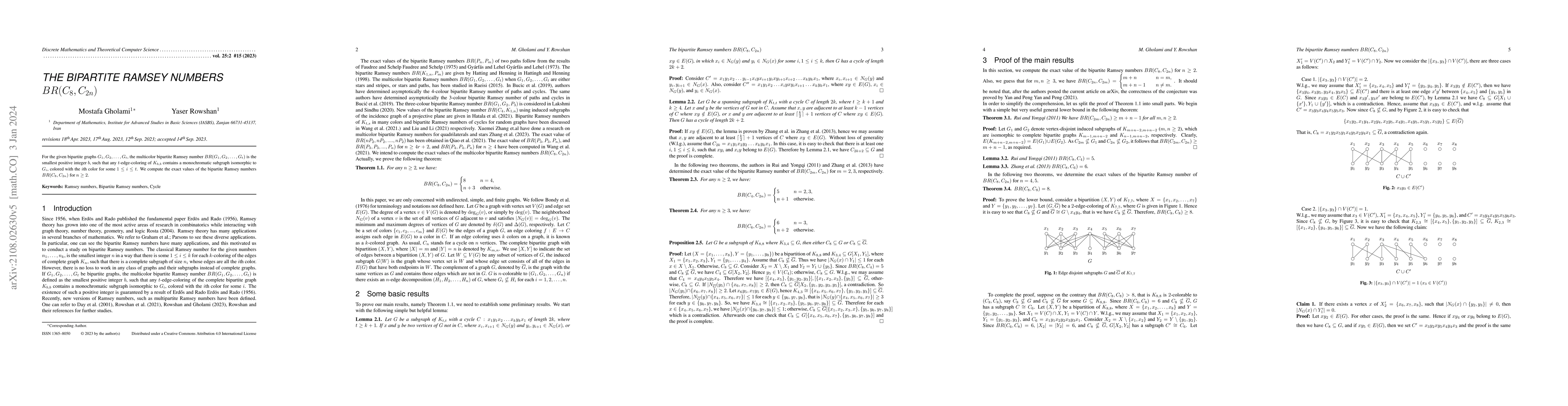 This paper computes the exact values of bipartite Ramsey numbers $BR(C_8, C_{2n})$ for $n \geq 2$, determining the smallest integer $b$ ensuring any $t$-edge-coloring of $K_{b,b}$ contains a monochromatic subgraph isomorphic to $C_8$ or $C_{2n}$.