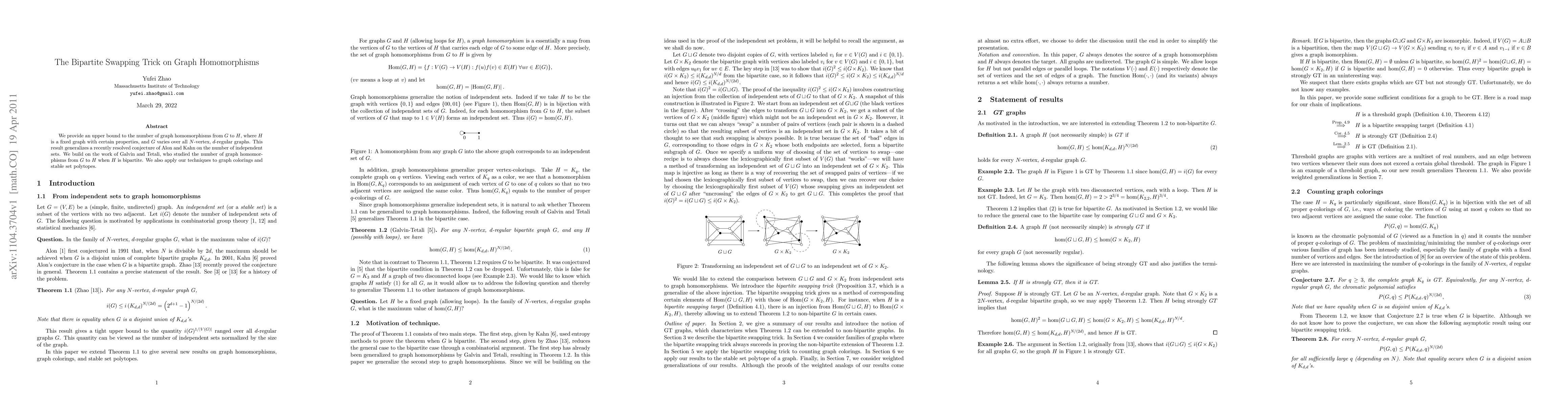 The paper establishes an upper bound on the number of graph homomorphisms from a variable graph to a fixed bipartite graph, generalizing a conjecture on independent sets.