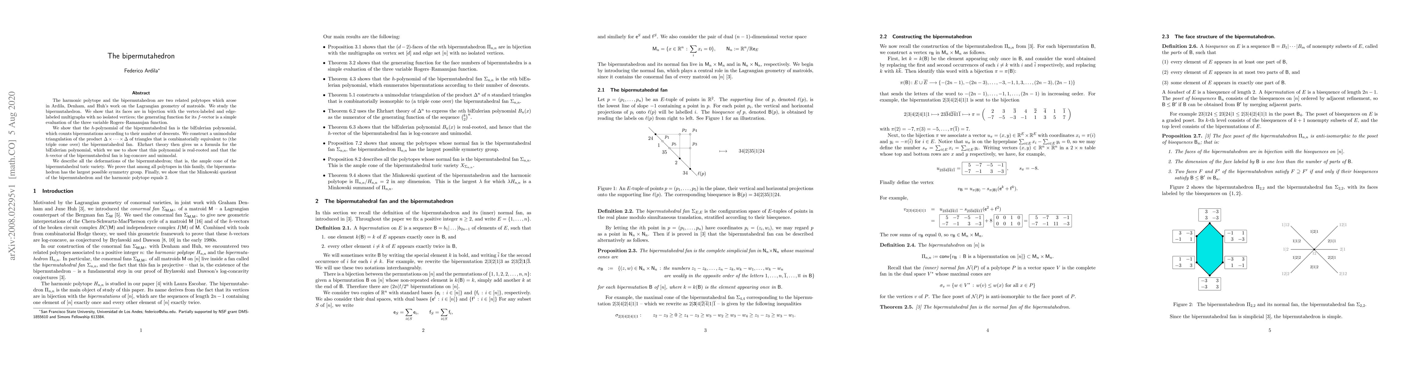 Researchers studied the bipermutahedron, a related polytope to the harmonic polytope, and found that its faces can be counted using multigraphs with no isolated vertices, and its h-polynomial relates to bipermutations with descents. The study also explored deformations of the bipermutahedron and its symmetry group, leading to insights into log-concave and unimodal properties.
