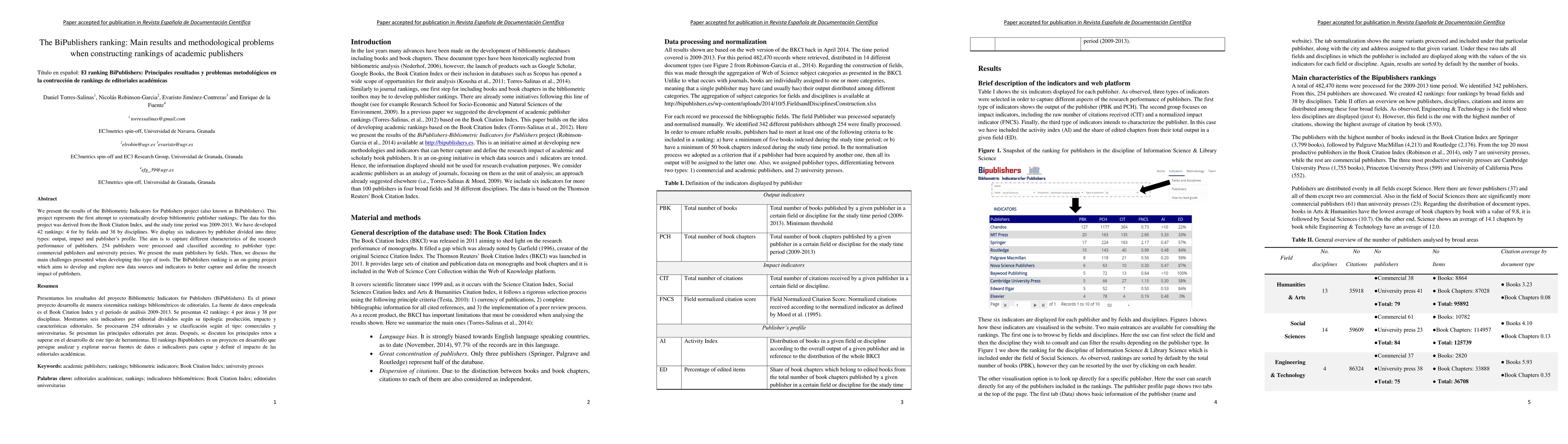 The BiPublishers project systematically developed bibliometric rankings for 254 academic publishers from 2009-2013, using data from the Book Citation Index, and highlighted challenges in constructing such rankings. The ongoing project aims to refine indicators to better assess publisher research impact.