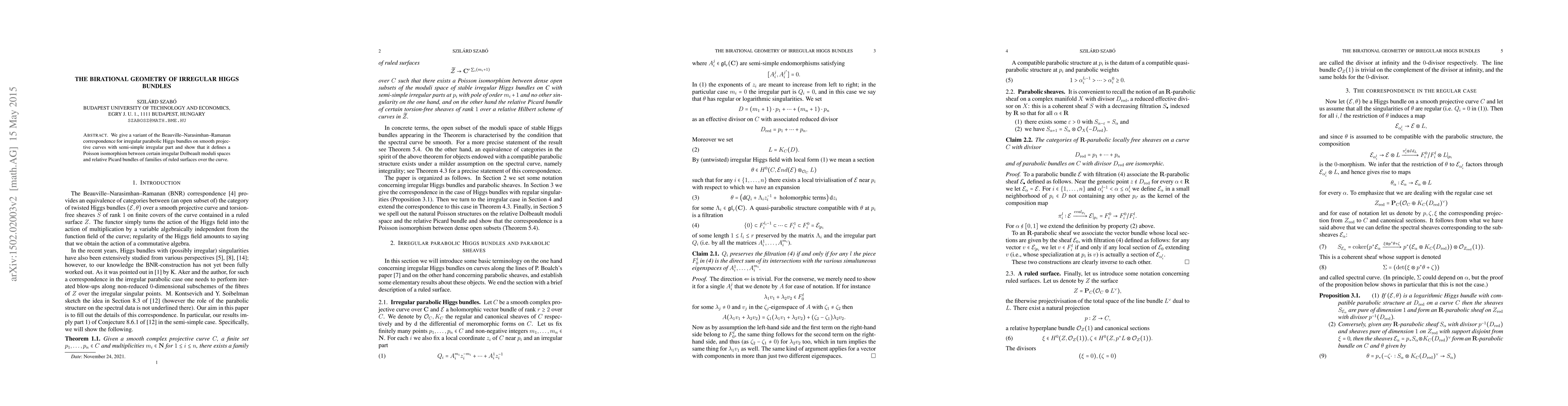 This paper develops a correspondence for irregular parabolic Higgs bundles, demonstrating a Poisson isomorphism between specific moduli spaces and relative Picard bundles, thereby advancing the understanding of birational geometry in this context.