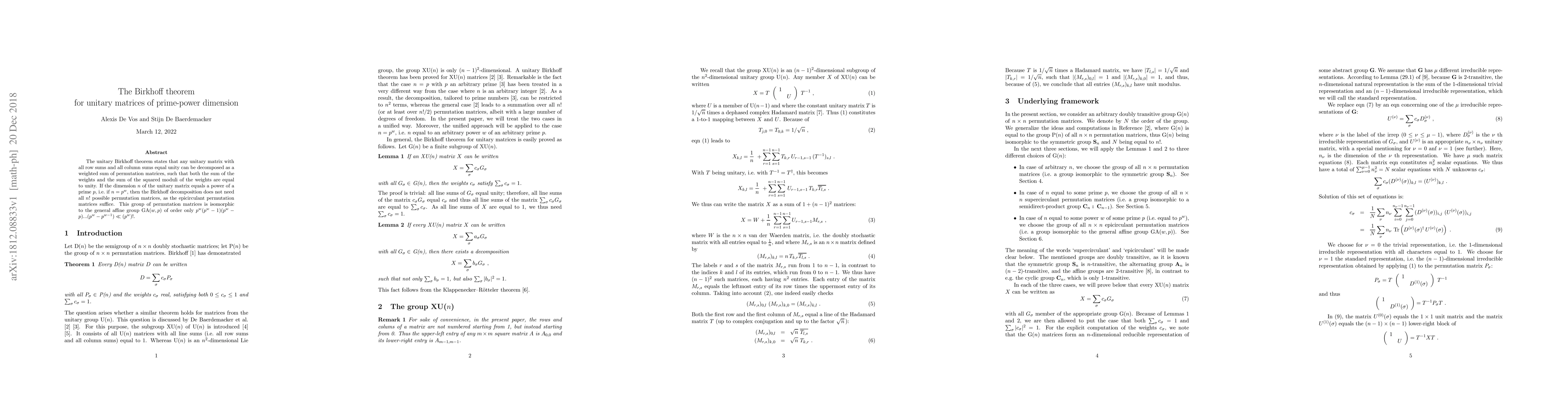 The unitary Birkhoff theorem states that any unitary matrix with all row sums and all column sums equal unity can be decomposed as a weighted sum of permutation matrices, such that both the sum of the weights and the sum of the squared moduli of the weights are equal to unity. If the dimension~$n$ of the unitary matrix equals a power of a prime $p$, i.e.\ if $n=p^w$, then the Birkhoff decomposition does not need all $n!$ possible permutation matrices, as the epicirculant permutation matrices suffice. This group of permutation matrices is isomorphic to the general affine group GA($w,p$) of order only $p^w(p^w-1)(p^w-p)...(p^w-p^{w-1}) \ll \left( p^w \right)!$.