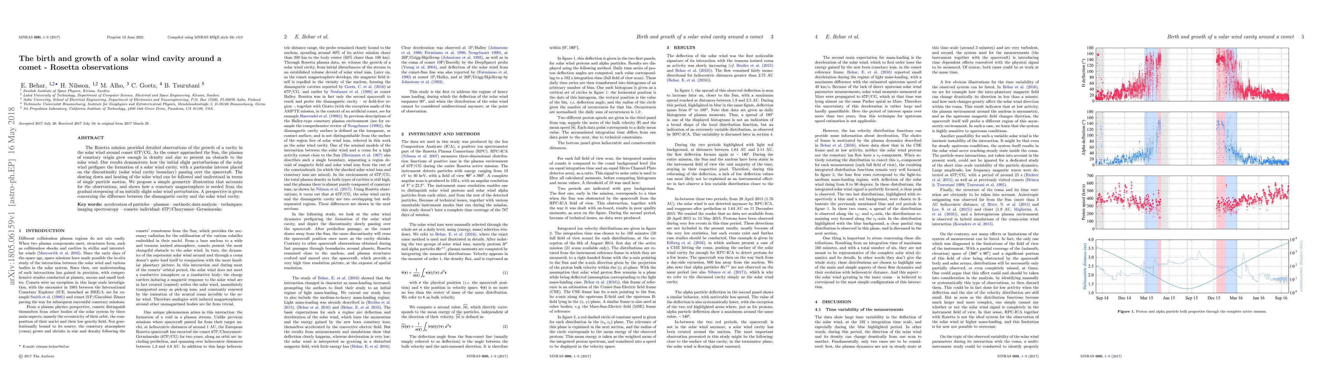 The Rosetta mission observed the formation of a solar wind cavity around comet 67P/CG as it approached the Sun, showing how cometary plasma density growth created a barrier to the solar wind. The study details the gradual formation and boundary of the cavity, illustrating the transition from a diamagnetic cavity to a solar wind cavity.