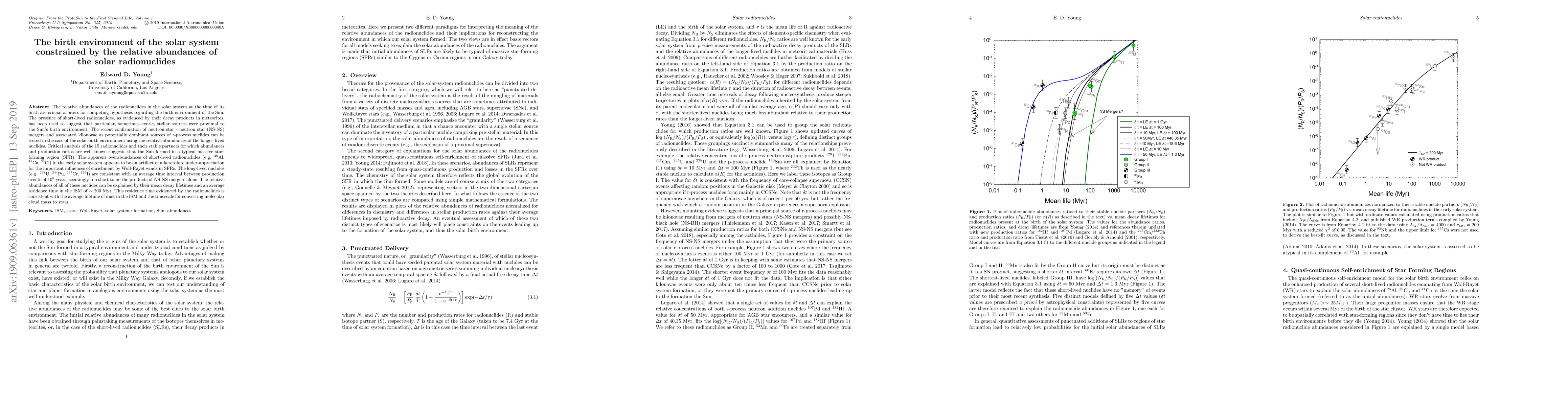 The relative abundances of the radionuclides in the solar system at the time of its birth are crucial arbiters for competing hypotheses regarding the birth environment of the Sun. The presence of short-lived radionuclides, as evidenced by their decay products in meteorites, has been used to suggest that particular, sometimes exotic, stellar sources were proximal to the Sun's birth environment. The recent confirmation of neutron star - neutron star (NS-NS) mergers and associated kilonovae as potentially dominant sources of r-process nuclides can be tested in the case of the solar birth environment using the relative abundances of the longer-lived nuclides. Critical analysis of the 15 radionuclides and their stable partners for which abundances and production ratios are well known suggests that the Sun formed in a typical massive star-forming region (SFR). The apparent overabundances of short-lived radionuclides (e.g.\, $^{26} {\rm Al}$, $^{41}{\rm Ca}$, $^{36}{\rm Cl}$) in the early solar system appears to be an artifact of a heretofore under-appreciation for the important influences of enrichment by Wolf-Rayet winds in SFRs. The long-lived nuclides (e.g.\, $^{238}{\rm U}$, $^{244}{\rm Pu}$, $^{247}{\rm Cr}$, $^{129}{\rm I}$) are consistent with an average time interval between production events of $10^8$ years, seemingly too short to be the products of NS-NS mergers alone. The relative abundances of all of these nuclides can be explained by their mean decay lifetimes and an average residence time in the ISM of $\sim200$ Myr. This residence time evidenced by the radionuclides is consistent with the average lifetime of dust in the ISM and the timescale for converting molecular cloud mass to stars.