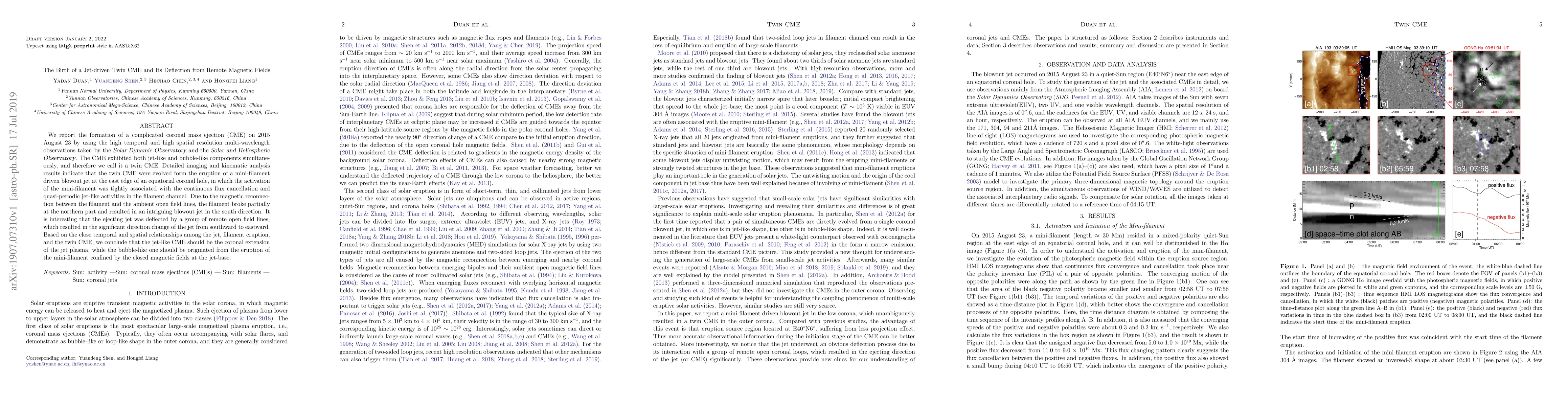 This paper reports the formation of a unique twin coronal mass ejection (CME) on August 23, 2015, characterized by both jet-like and bubble-like components, observed through high-resolution multi-wavelength data. The twin CME resulted from a mini-filament eruption driven by a blowout jet in a coronal hole, with the jet being deflected by remote open field lines, changing its direction from south to east.