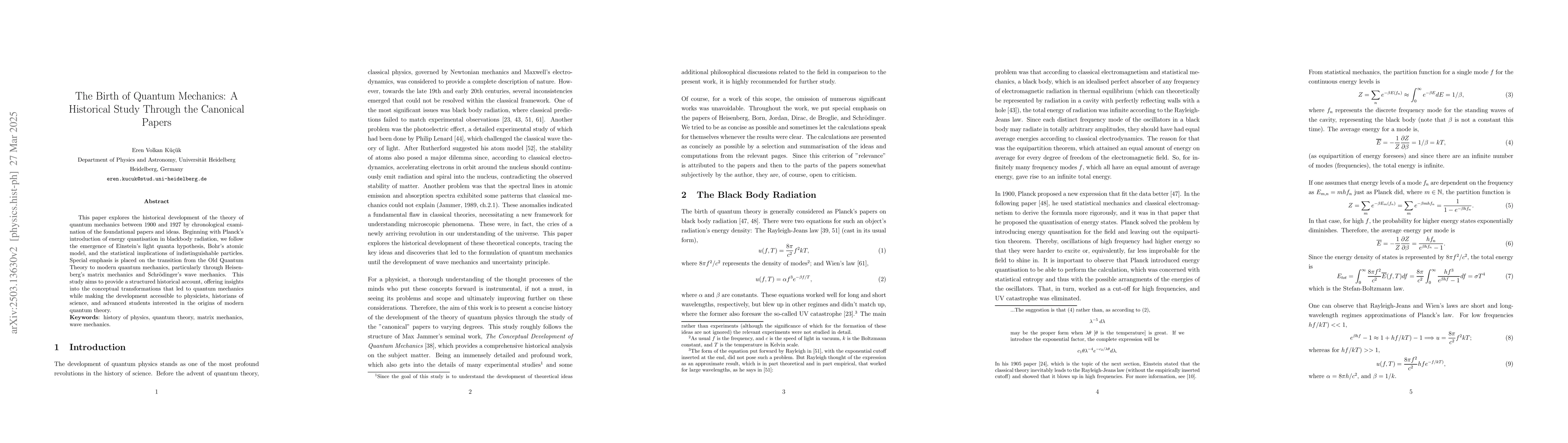 The paper's main technical contribution is the systematic examination and interpretation of the foundational papers, elucidating the evolution of quantum mechanics through a historical lens.