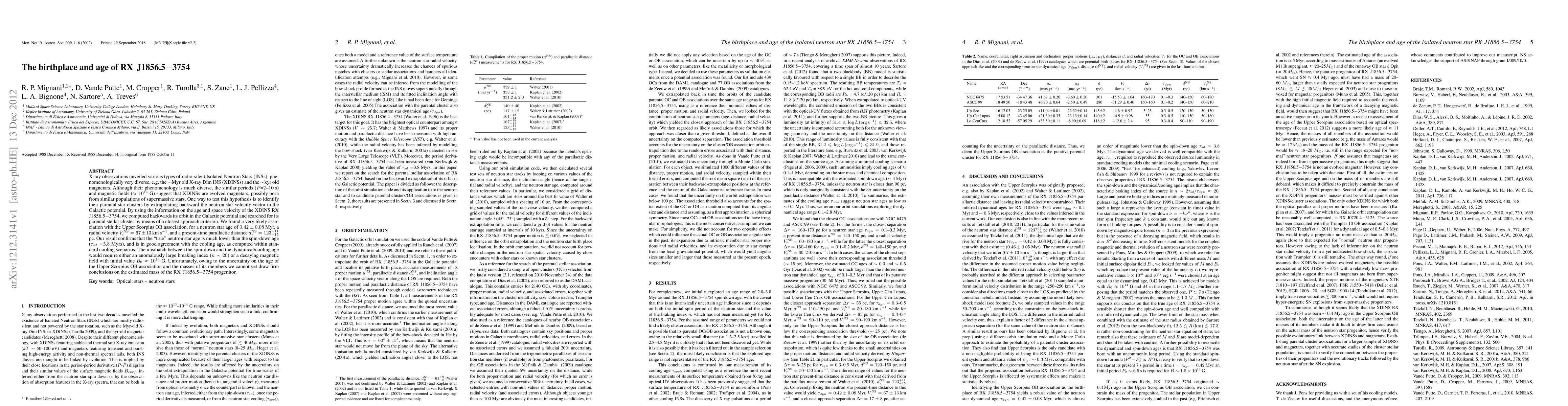 X-ray observations unveiled various types of radio-silent Isolated Neutron Stars (INSs), phenomenologically very diverse, e.g. the Myr old X-ray Dim INS (XDINSs) and the kyr old magnetars. Although their phenomenology is much diverse, the similar periods (P=2--10 s) and magnetic fields (~10^{14} G) suggest that XDINSs are evolved magnetars, possibly born from similar populations of supermassive stars. One way to test this hypothesis is to identify their parental star clusters by extrapolating backward the neutron star velocity vector in the Galactic potential. By using the information on the age and space velocity of the XDINS RX J1856.5-3754, we computed backwards its orbit in the Galactic potential and searched for its parental stellar cluster by means of a closest approach criterion. We found a very likely association with the Upper Scorpius OB association, for a neutron star age of 0.42+/-0.08 Myr, a radial velocity V_r^NS =67+/- 13$ km s^{-1}, and a present-time parallactic distance d_\pi^NS = 123^{+11}_{-15} pc. Our result confirms that the "true" neutron star age is much lower than the spin-down age (tau_{sd}=3.8 Myrs), and is in good agreement with the cooling age, as computed within standard cooling scenarios. The mismatch between the spin-down and the dynamical/cooling age would require either an anomalously large breaking index (n~20) or a decaying magnetic field with initial value B_0 ~ 10^{14} G. Unfortunately, owing to the uncertainty on the age of the Upper Scorpius OB association and the masses of its members we cannot yet draw firm conclusions on the estimated mass of the RX J1856.5-3754 progenitor.