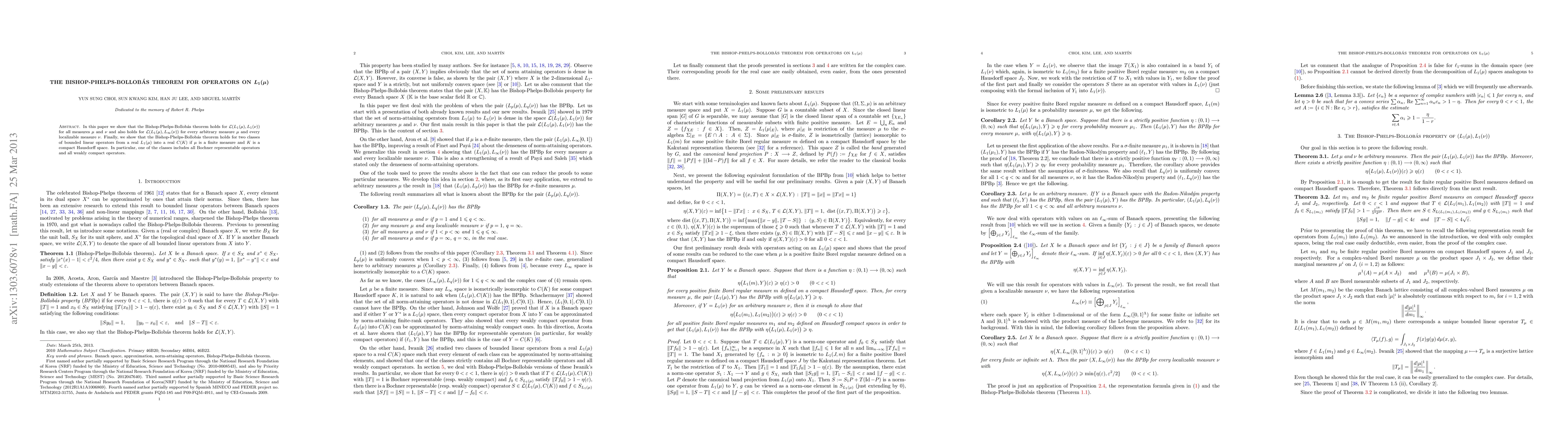 This paper demonstrates the validity of the Bishop-Phelps-Bollobás theorem for various operator spaces, including $\mathcal{L}(L_1(\mu), L_1(\nu))$ and $\mathcal{L}(L_1(\mu),L_\infty(\nu))$, and for specific classes of operators from $L_1(\mu)$ to $C(K)$ when $\mu$ is finite and $K$ is compact Hausdorff.