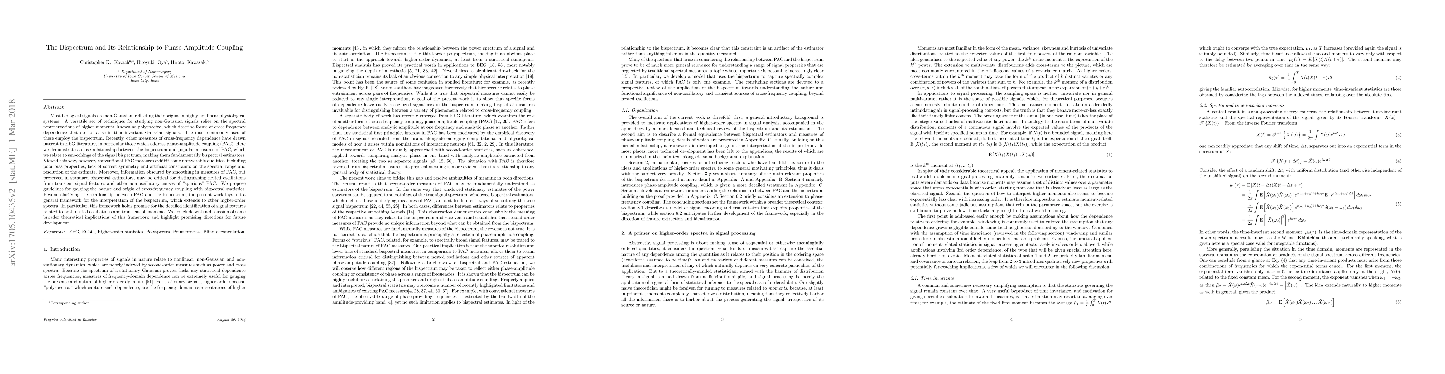 Most biological signals are non-Gaussian, reflecting their origins in highly nonlinear physiological systems. A versatile set of techniques for studying non-Gaussian signals relies on the spectral representations of higher moments, known as polyspectra, which describe forms of cross-frequency dependence that do not arise in time-invariant Gaussian signals. The most commonly used of these employ the bispectrum. Recently, other measures of cross-frequency dependence have drawn interest in EEG literature, in particular those which address phase-amplitude coupling (PAC). Here we demonstrate a close relationship between the bispectrum and popular measures of PAC, which we relate to smoothings of the signal bispectrum, making them fundamentally bispectral estimators. Viewed this way, however, conventional PAC measures exhibit some unfavorable qualities, including poor bias properties, lack of correct symmetry and artificial constraints on the spectral range and resolution of the estimate. Moreover, information obscured by smoothing in measures of PAC, but preserved in standard bispectral estimators, may be critical for distinguishing nested oscillations from transient signal features and other non-oscillatory causes of "spurious" PAC. We propose guidelines for gauging the nature and origin of cross-frequency coupling with bispectral statistics. Beyond clarifying the relationship between PAC and the bispectrum, the present work lays out a general framework for the interpretation of the bispectrum, which extends to other higher-order spectra. In particular, this framework holds promise for the detailed identification of signal features related to both nested oscillations and transient phenomena. We conclude with a discussion of some broader theoretical implications of this framework and highlight promising directions for future development.