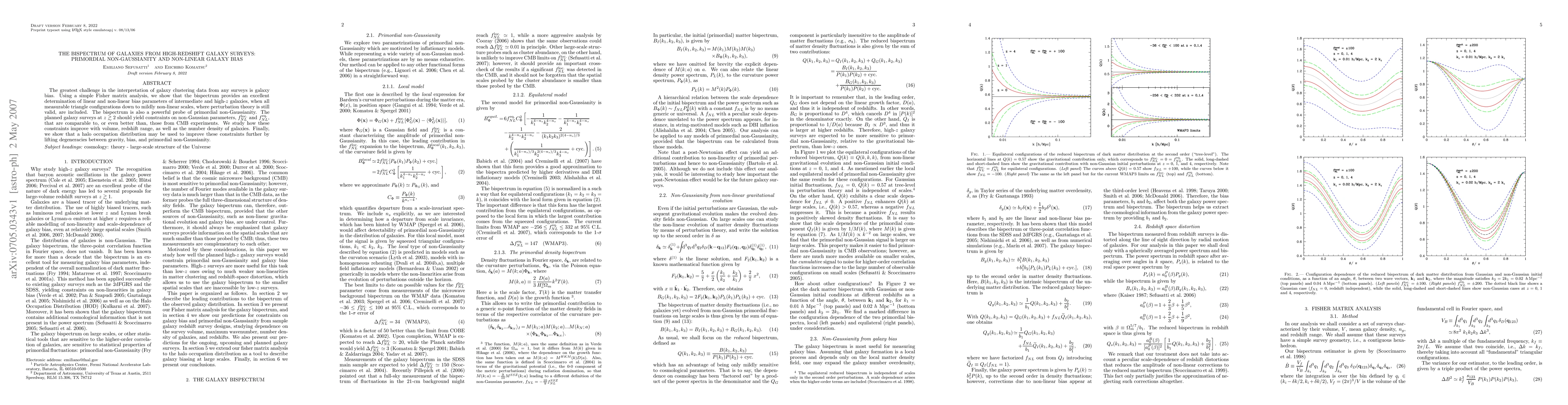 The greatest challenge in the interpretation of galaxy clustering data from any surveys is galaxy bias. Using a simple Fisher matrix analysis, we show that the bispectrum provides an excellent determination of linear and non-linear bias parameters of intermediate and high-z galaxies, when all measurable triangle configurations down to mildly non-linear scales, where perturbation theory is still valid, are included. The bispectrum is also a powerful probe of primordial non-Gaussianity. The planned galaxy surveys at z>2 should yield constraints on non-Gaussian parameters, f_{NL}^{loc.} and f_{NL}^{eq.}, that are comparable to, or even better than, those from CMB experiments. We study how these constraints improve with volume, redshift range, as well as the number density of galaxies. Finally, we show that a halo occupation distribution may be used to improve these constraints further by lifting degeneracies between gravity, bias, and primordial non-Gaussianity.