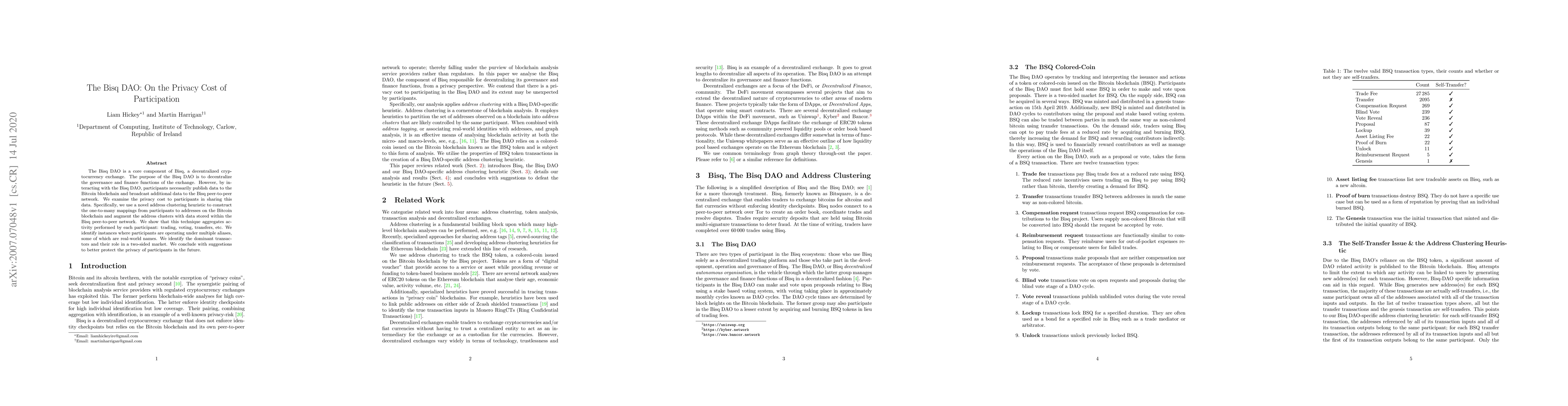 The Bisq DAO study reveals that participants share data on the Bitcoin blockchain and peer-to-peer network when using the decentralized exchange, potentially compromising their privacy. The research identifies methods to protect participant anonymity and suggests future improvements.