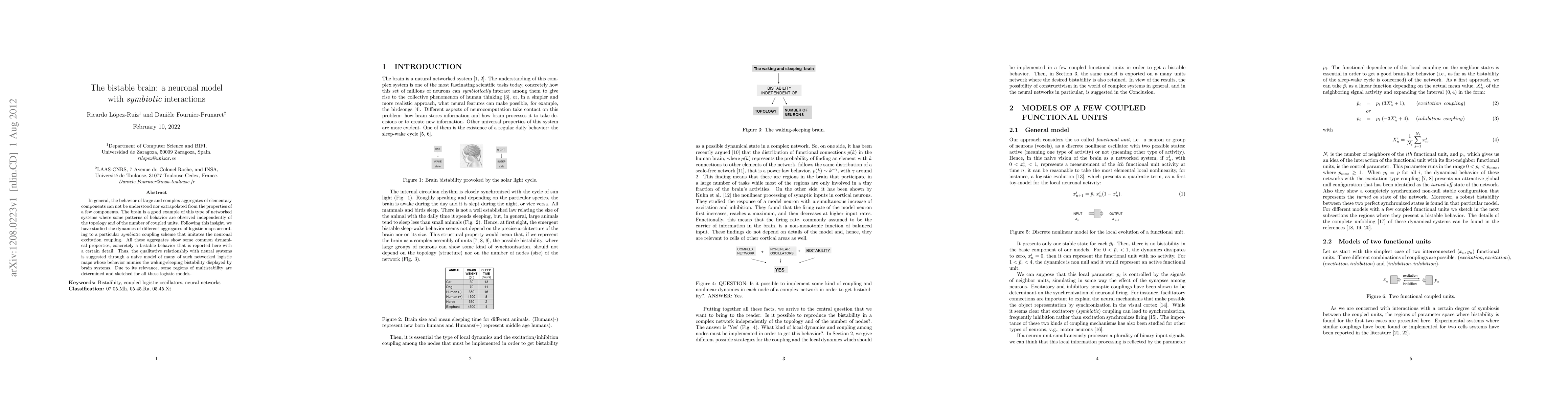 In general, the behavior of large and complex aggregates of elementary components can not be understood nor extrapolated from the properties of a few components. The brain is a good example of this type of networked systems where some patterns of behavior are observed independently of the topology and of the number of coupled units. Following this insight, we have studied the dynamics of different aggregates of logistic maps according to a particular {\it symbiotic} coupling scheme that imitates the neuronal excitation coupling. All these aggregates show some common dynamical properties, concretely a bistable behavior that is reported here with a certain detail. Thus, the qualitative relationship with neural systems is suggested through a naive model of many of such networked logistic maps whose behavior mimics the waking-sleeping bistability displayed by brain systems. Due to its relevance, some regions of multistability are determined and sketched for all these logistic models.