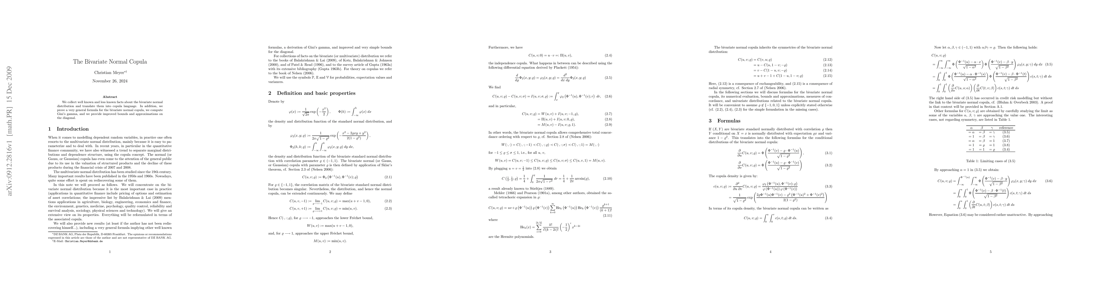 Summary: This paper explores the bivariate normal distribution in copula terms, presenting a generalized formula for the bivariate normal copula, calculating Gini's gamma, and offering enhanced bounds and approximations along the diagonal.