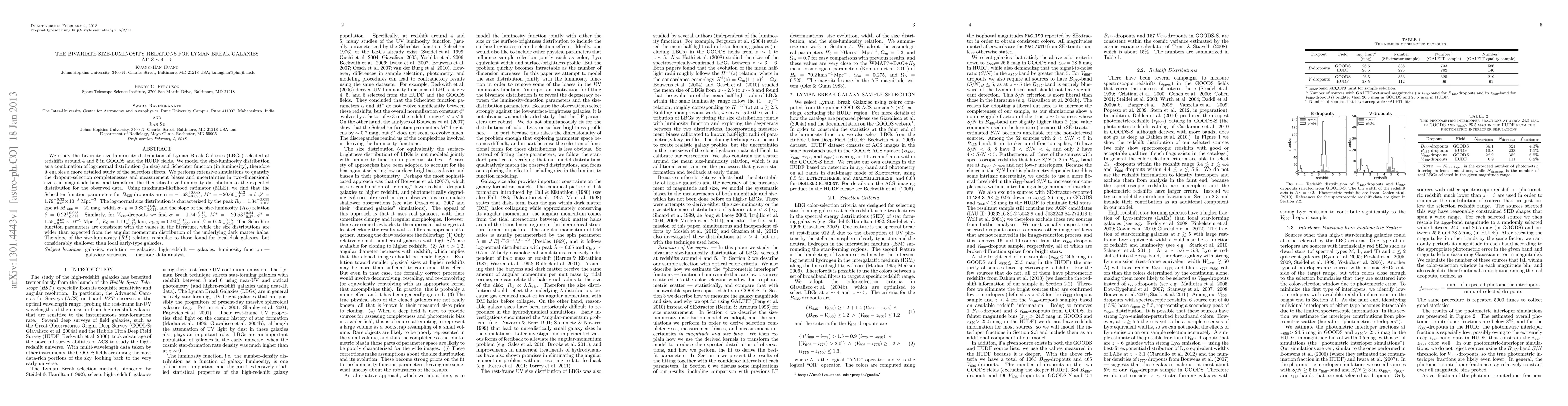 The paper presents a comprehensive method to model and analyze the bivariate size-luminosity distribution of Lyman Break Galaxies, combining log-normal and Schechter functions to account for size and luminosity distributions, respectively.