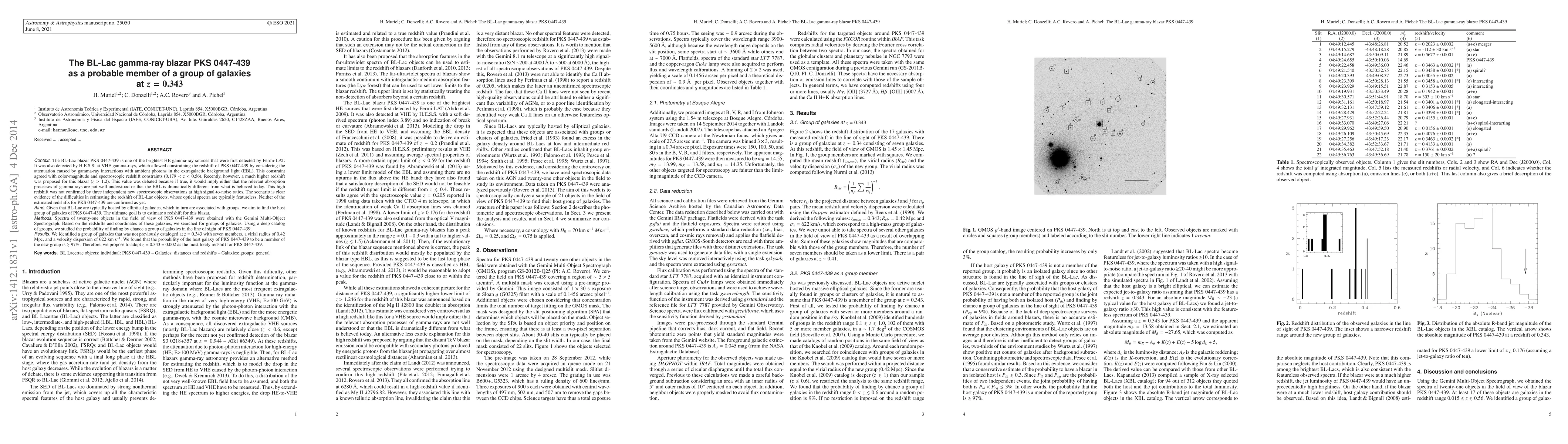 Scientists have discovered a group of galaxies in which the gamma-ray blazar PKS 0447-439 is likely to reside, providing new evidence for its redshift at z=0.343.