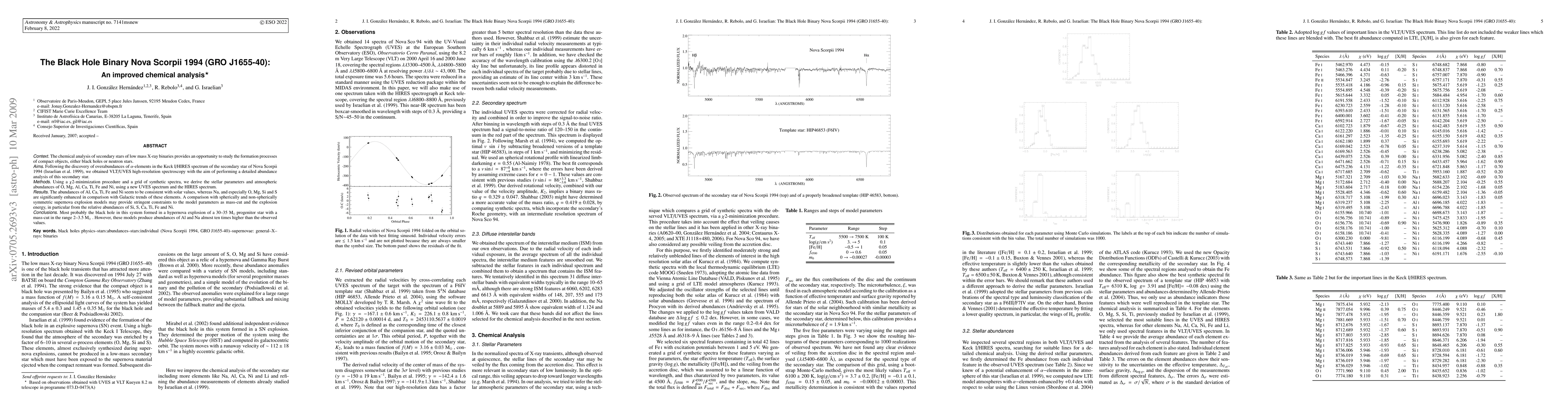 The chemical analysis of secondary stars of low mass X-ray binaries provides an opportunity to study the formation processes of compact objects, either black holes or neutron stars. Following the discovery of overabundances of $\alpha$-elements in the HIRES/Keck spectrum of the secondary star of Nova Scorpii 1994 (Israelian et al. 1999), we obtained UVES/VLT high-resolution spectroscopy with the aim of performing a detailed abundance analysis of this secondary star. Using a $\chi2$-minimization procedure and a grid of synthetic spectra, we derive the stellar parameters and atmospheric abundances of O, Mg, Al, Ca, Ti, Fe and Ni, using a new UVES spectrum and the HIRES spectrum.The abundances of Al, Ca, Ti, Fe and Ni seem to be consistent with solar values, whereas Na, and especially O, Mg, Si and S are significantly enhanced in comparison with Galactic trends of these elements. A comparison with spherically and non-spherically symmetric supernova explosion models may provide stringent constraints to the model parameters as mass-cut and the explosion energy, in particular from the relative abundances of Si, S, Ca, Ti, Fe and Ni. Most probably the black hole in this system formed in a hypernova explosion of a 30--35 \Msun progenitor star with a mass-cut in the range 2--3.5 \Msun. However, these models produce abundances of Al and Na almost ten times higher than the observed values.