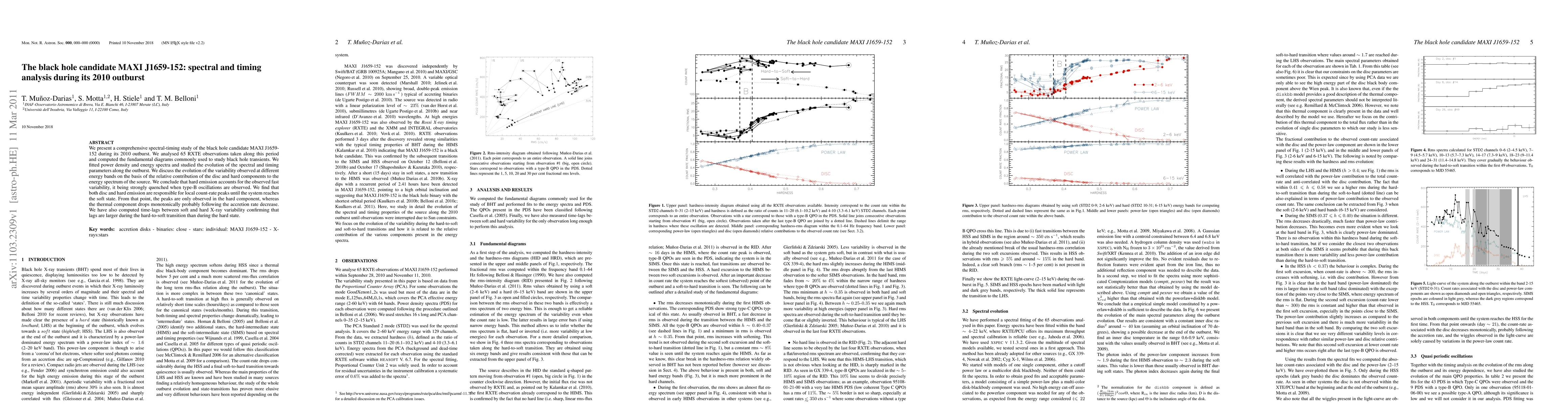 This study analyzes data from black hole candidate MAXI J1659-152 during its 2010 outburst, finding that hard emission drives variability and explaining the transition from a soft to a hard state.