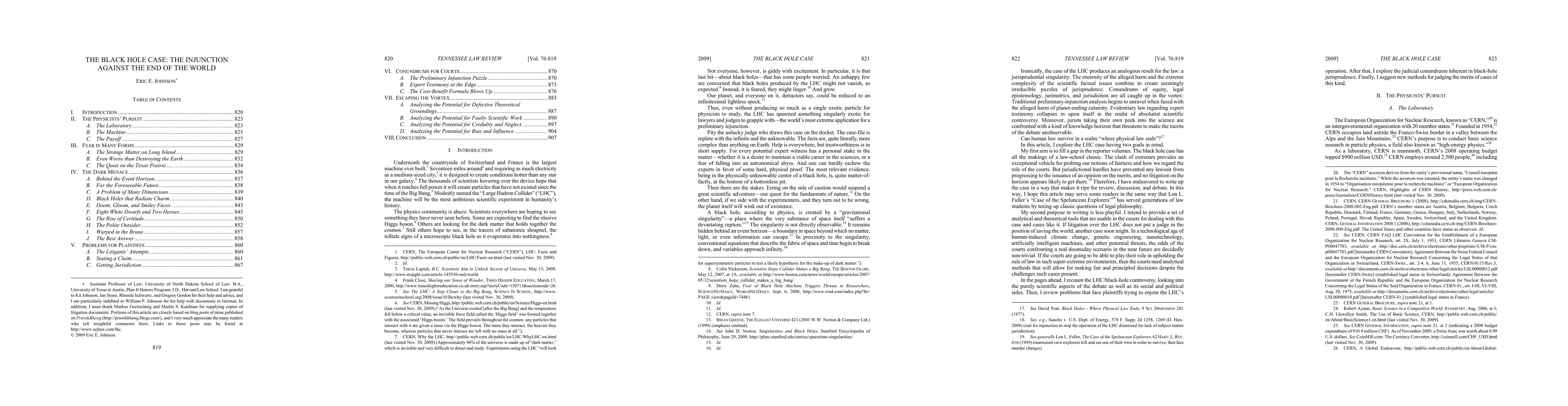 What should a court do with a preliminary-injunction request to halt a multi-billion-dollar particle-physics experiment that plaintiffs claim could create a black hole that will devour the planet? The real-life case of CERN's LHC seems like a legal classic in the making. Unfortunately, however, no court has braved the extreme factual terrain to reach the merits. This article steps into the void. First, the relevant facts of the scientific debate and its human context are memorialized and made ripe for legal analysis. Next, the article explores the daunting challenges the case presents to equity, evidence, and law-and-economics analysis. Finally, a set of analytical tools are offered that provide a way out of the thicket - a method for providing meaningful judicial review even in cases, such as this one, where the scientific issues are almost unfathomably complex.