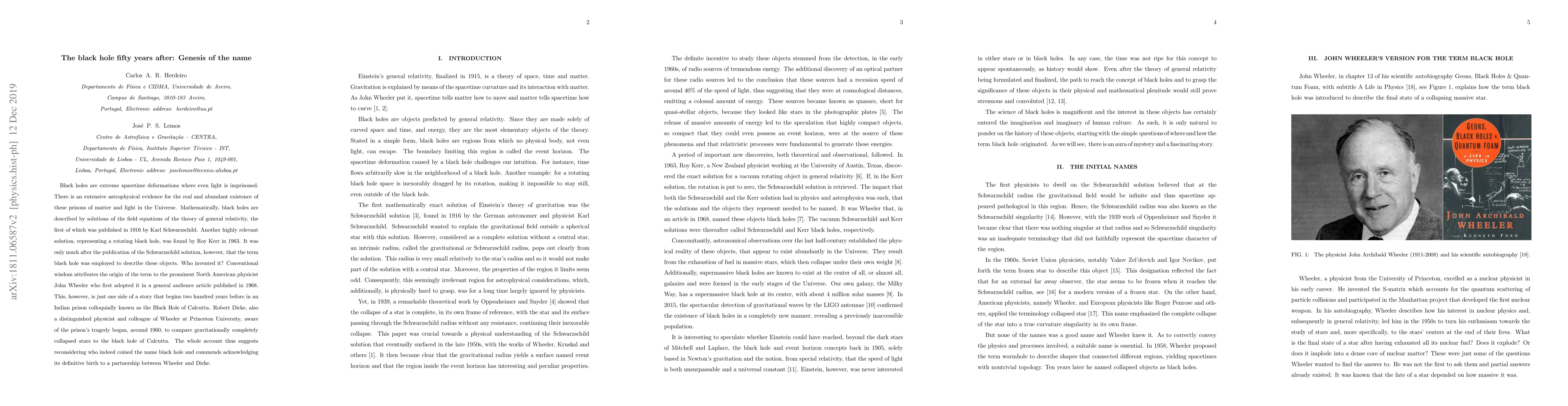 Black holes are extreme spacetime deformations where even light is imprisoned. There is an extensive astrophysical evidence for the real and abundant existence of these prisons of matter and light in the Universe. Mathematically, black holes are described by solutions of the field equations of the theory of general relativity, the first of which was published in 1916 by Karl Schwarzschild. Another highly relevant solution, representing a rotating black hole, was found by Roy Kerr in 1963. It was only much after the publication of the Schwarzschild solution, however, that the term black hole was employed to describe these objects. Who invented it? Conventional wisdom attributes the origin of the term to the prominent North American physicist John Wheeler who first adopted it in a general audience article published in 1968. This, however, is just one side of a story that begins two hundred years before in an Indian prison colloquially known as the Black Hole of Calcutta. Robert Dicke, also a distinguished physicist and colleague of Wheeler at Princeton University, aware of the prison's tragedy began, around 1960, to compare gravitationally completely collapsed stars to the black hole of Calcutta. The whole account thus suggests reconsidering who indeed coined the name black hole and commends acknowledging its definitive birth to a partnership between Wheeler and Dicke.