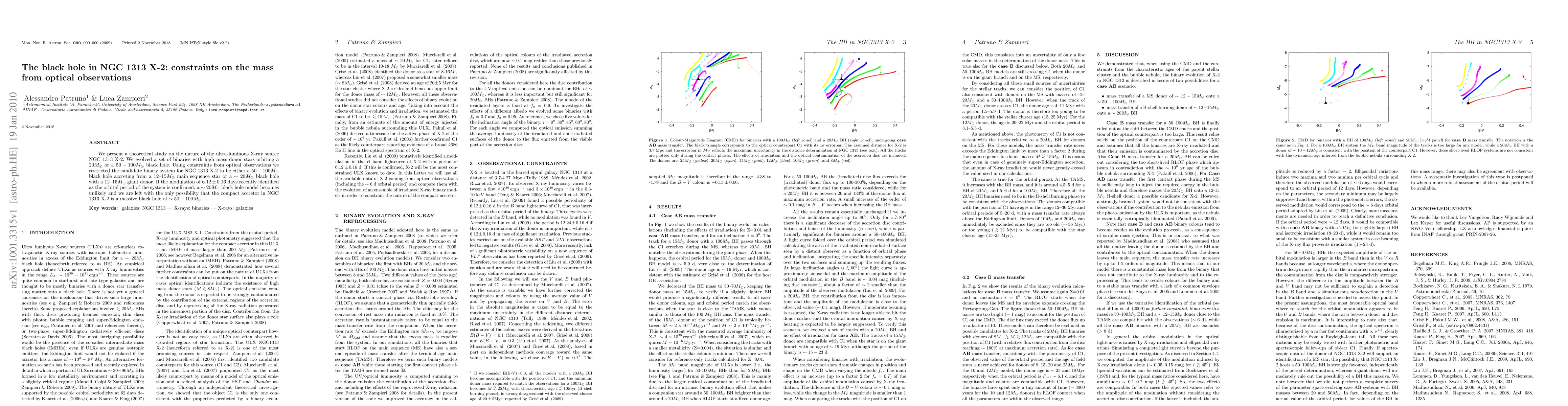 We present a theoretical study on the nature of the ultra-luminous X-ray source NGC 1313 X-2. We evolved a set of binaries with high mass donor stars orbiting a 20 M_Sun or a 50-100 M_Sun black hole. Using constraints from optical observations we restricted the candidate binary system for NGC 1313 X-2 to be either a 50-100 M_Sun black hole accreting from a 12-15 M_Sun main sequence star or a ~20 M_Sun black hole with a 12-15 M_Sun giant donor. If the modulation of ~6.12 days recently identified as the orbital period of the system is confirmed, a ~20 M_Sun black hole model becomes unlikely and we are left with the only possibility that the compact accretor in NGC 1313 X-2 is a massive black hole of ~50-100 M_Sun.