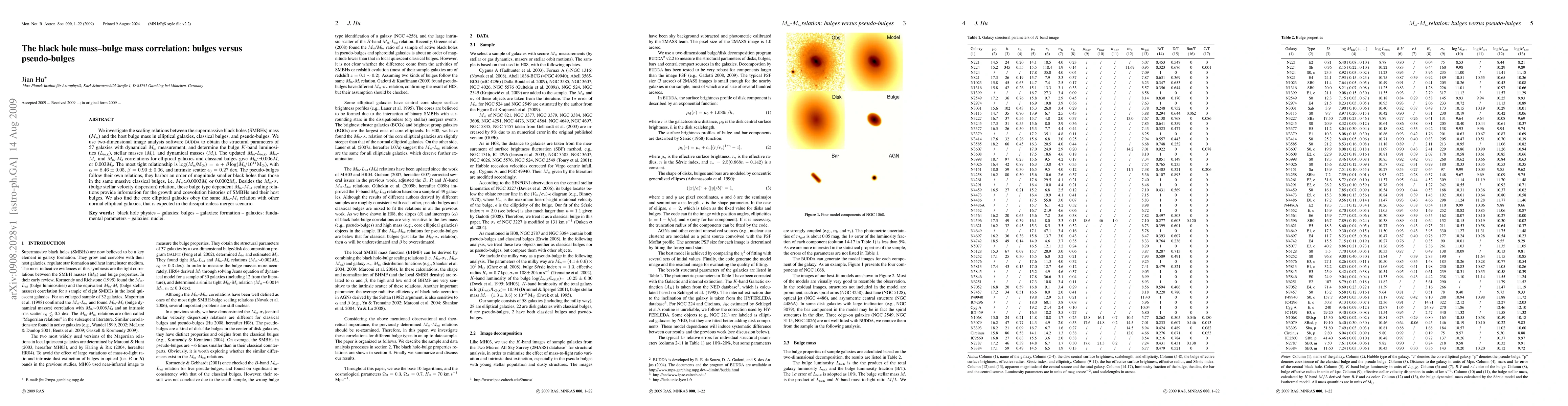 This paper examines the mass correlation between supermassive black holes (M_bh) and the host bulge mass in elliptical galaxies, distinguishing between classical bulges and pseudo-bulges. It finds tighter M_bh-M_d scaling relations for classical bulges compared to pseudo-bulges, indicating different growth and coevolution histories for black holes in these bulge types.