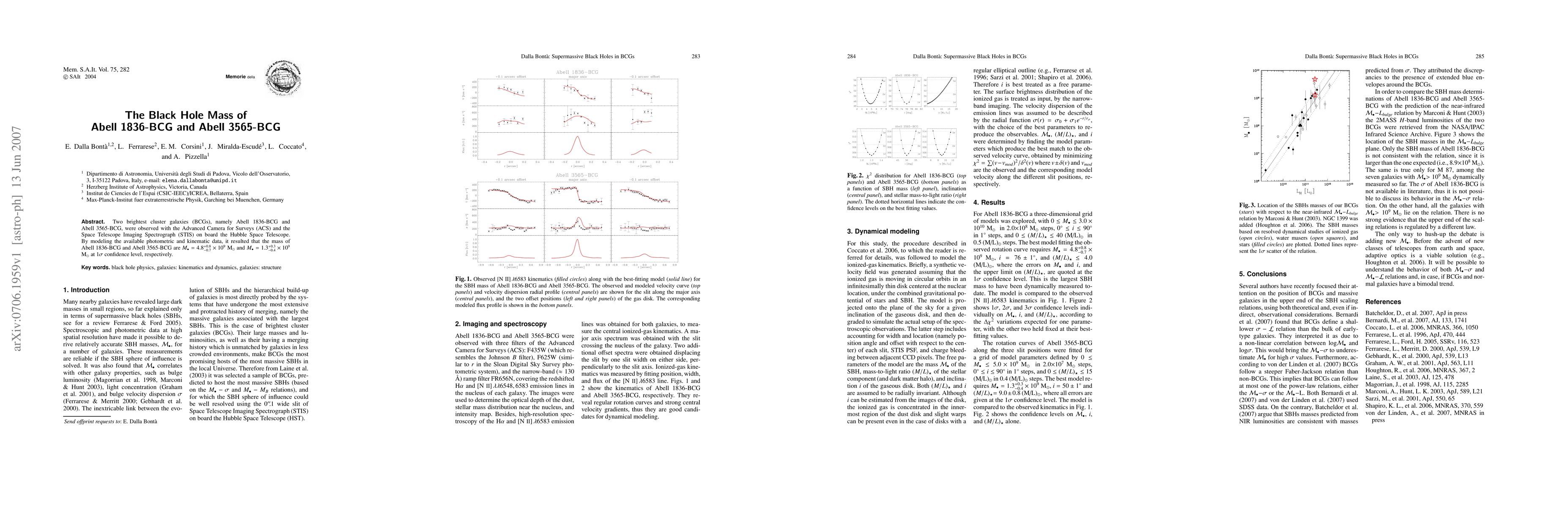 Researchers estimated the masses of two brightest cluster galaxies using Hubble Space Telescope data, finding Abell 1836-BCG to have a mass of approximately $4.8 imes 10^9$ solar masses and Abell 3565-BCG to have a mass of around $1.3 imes 10^9$ solar masses.