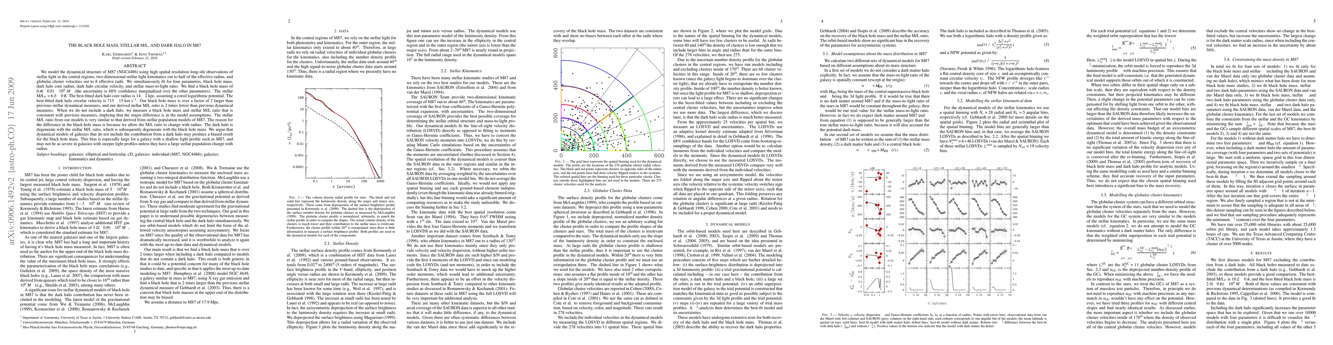 We model the dynamical structure of M87 (NGC4486) using high spatial resolution long-slit observations of stellar light in the central regions, two-dimensional stellar light kinematics out to half of the effective radius, and globular cluster velocities out to 8 effective radii. We simultaneously fit for four parameters, black hole mass, dark halo core radius, dark halo circular velocity, and stellar mass-to-light ratio. We find a black hole mass of 6.4(+-0.5)x10^9 Msun(the uncertainty is 68% confidence marginalized over the other parameters). The stellar M/L_V=6.3+-0.8. The best-fitted dark halo core radius is 14+-2 kpc, assuming a cored logarithmic potential. The best-fitted dark halo circular velocity is 715+-15 km/s. Our black hole mass is over a factor of 2 larger than previous stellar dynamical measures, and our derived stellar M/L ratio is 2 times lower than previous dynamical measures. When we do not include a dark halo, we measure a black hole mass and stellar M/L ratio that is consistent with previous measures, implying that the major difference is in the model assumptions. The stellar M/L ratio from our models is very similar to that derived from stellar population models of M87. The reason for the difference in the black hole mass is because we allow the M/L ratio to change with radius. The dark halo is degenerate with the stellar M/L ratio, which is subsequently degenerate with the black hole mass. We argue that dynamical models of galaxies that do not include the contribution from a dark halo may produce a biased result for the black hole mass. This bias is especially large for a galaxy with a shallow light profile such as M87, and may not be as severe in galaxies with steeper light profiles unless they have a large stellar population change with radius.