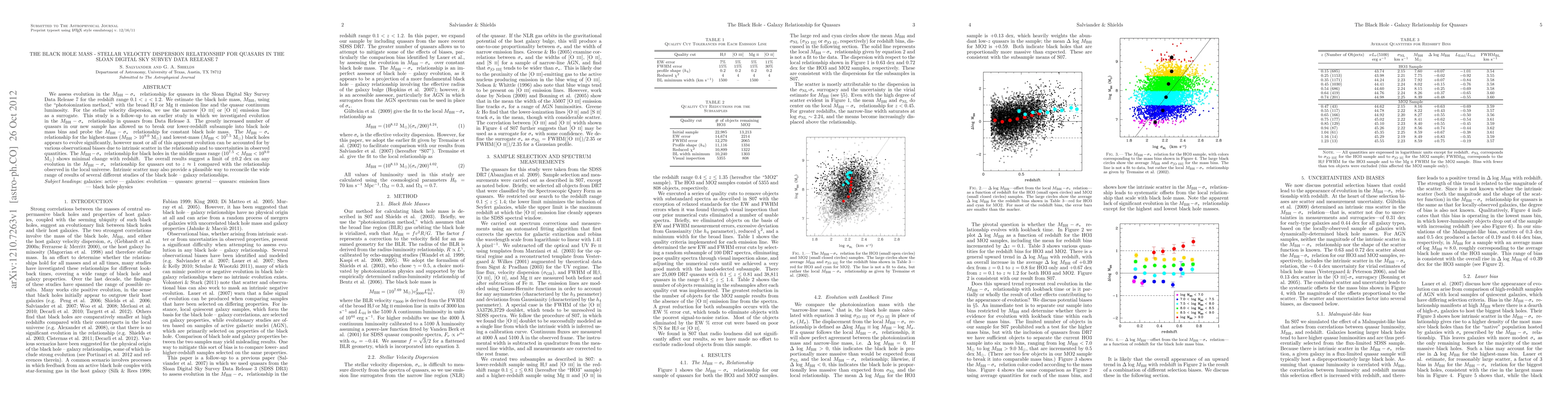 This study investigates the evolution of the black hole mass-stellar velocity dispersion relationship (M-sigma) for quasars in the Sloan Digital Sky Survey Data Release 7, finding minimal change for mid-mass black holes but significant apparent evolution for the highest and lowest mass black holes, largely attributable to observational biases and intrinsic scatter.