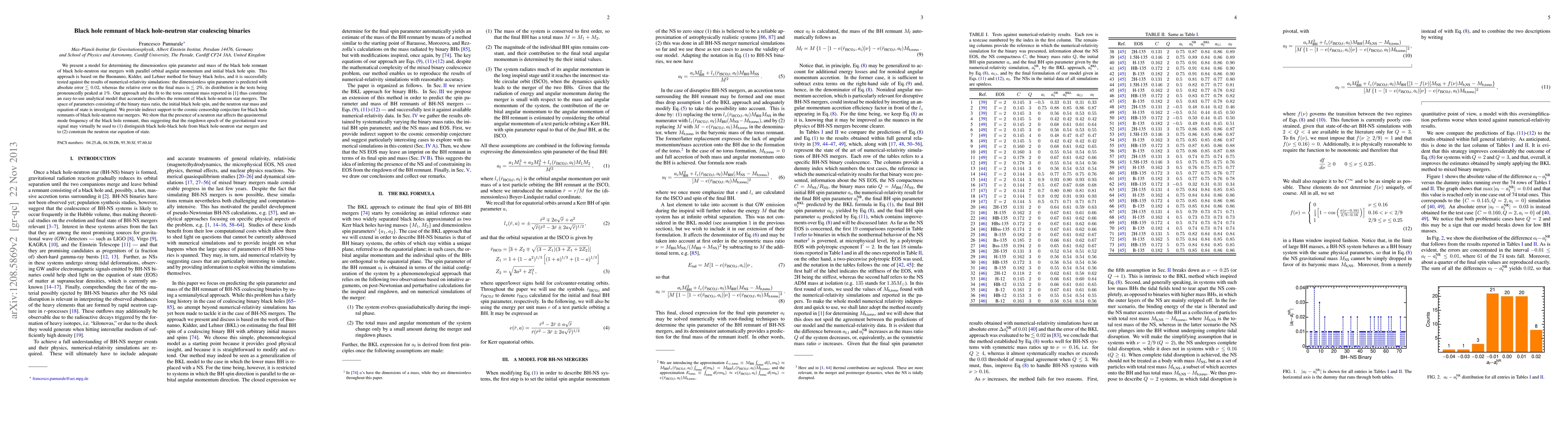 This paper develops a model to predict the dimensionless spin parameter and mass of black hole remnants from black hole-neutron star mergers, achieving high accuracy in simulations. It supports the cosmic censorship conjecture and suggests using gravitational wave signals to distinguish between different types of mergers and to constrain neutron star properties.