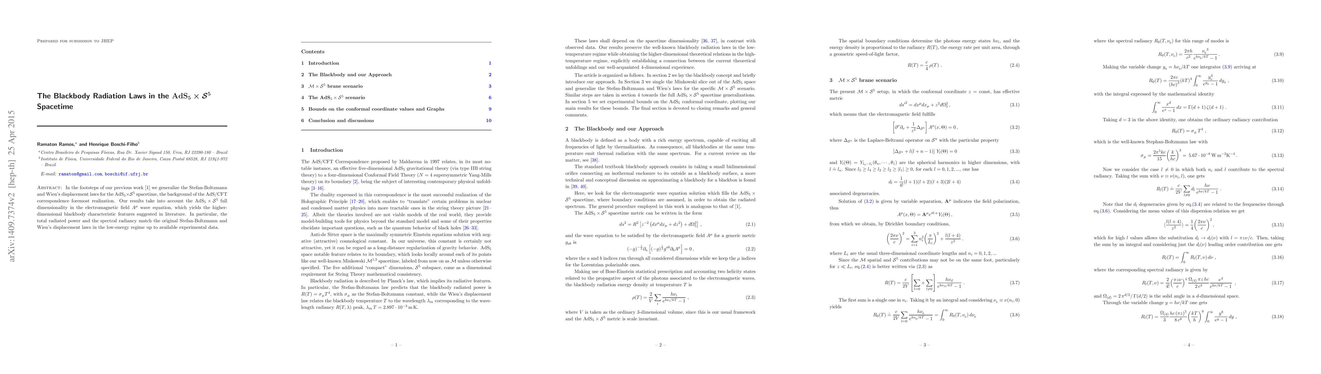 Researchers generalize Stefan-Boltzmann and Wien's displacement laws for blackbody radiation in AdS5 x S5 spacetime, matching low-energy experimental data.
