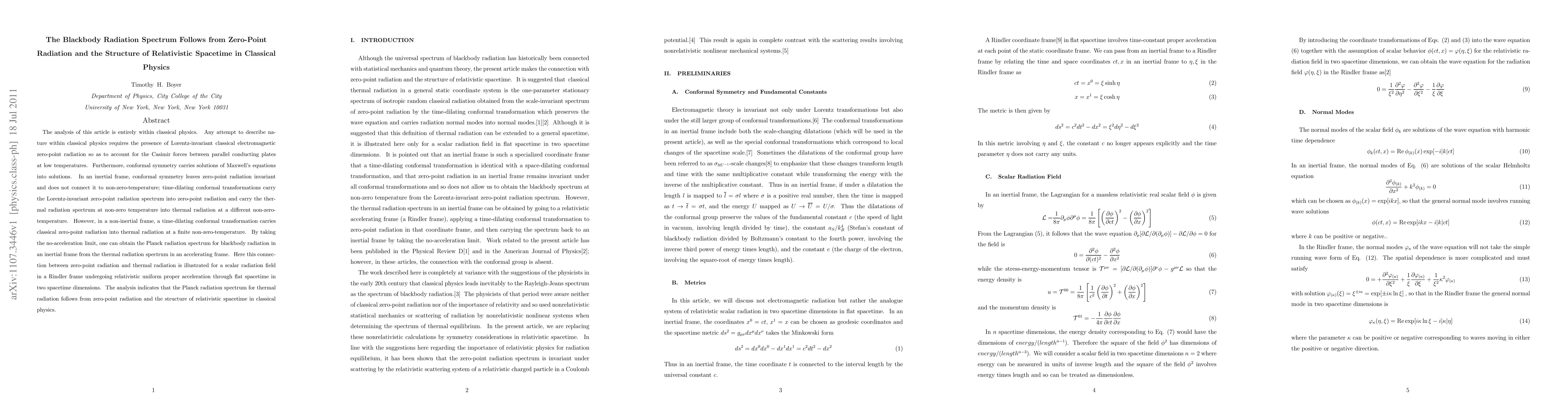 This paper demonstrates that the Planck blackbody radiation spectrum can be derived from classical zero-point radiation and the relativistic structure of spacetime, showing how zero-point radiation transforms into thermal radiation in non-inertial frames, ultimately leading to the classical explanation of blackbody radiation.