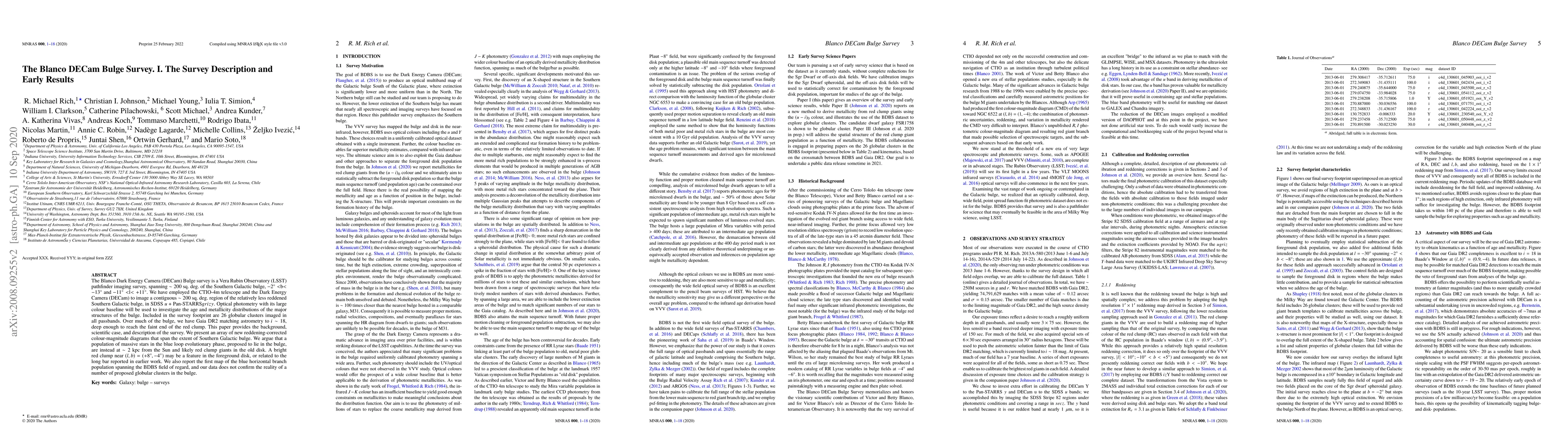 The Blanco DECam Bulge Survey aims to investigate the age and metallicity of the Southern Galactic bulge using the Dark Energy Camera on the CTIO-4m telescope. Early results include new reddening-corrected color-magnitude diagrams, suggesting massive stars previously thought to be in the bulge are likely red clump giants in the old disk.