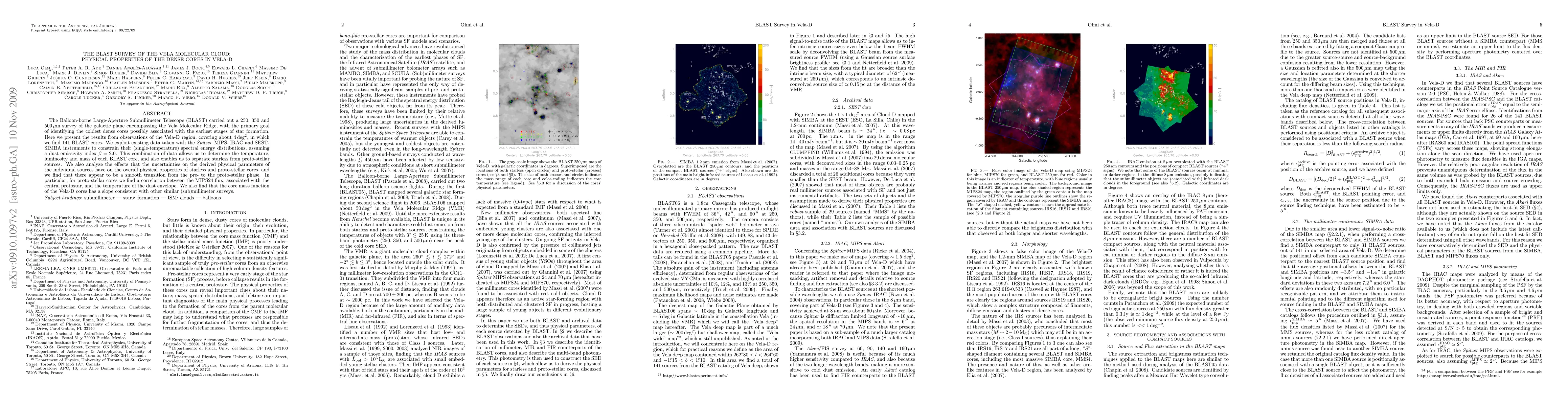 The BLAST survey of Vela-D identifies 141 dense cores, determining their physical properties and distinguishing starless from proto-stellar sources, revealing a smooth transition from pre- to proto-stellar phases and a correlation between MIPS24 flux and dust envelope temperature. The core mass function slope aligns with other submillimeter surveys.