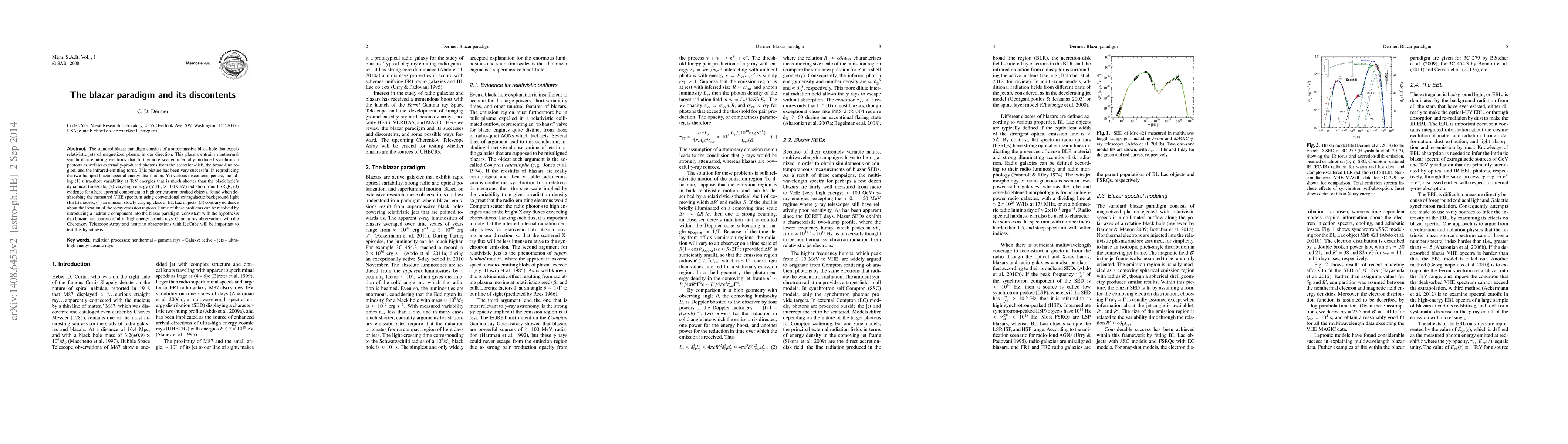 The standard blazar paradigm consists of a supermassive black hole that expels relativistic jets of magnetized plasma in our direction. This plasma entrains nonthermal synchrotron-emitting electrons that furthermore scatter internally-produced synchrotron photons as well as externally-produced photons from the accretion-disk, the broad-line region, and the infrared-emitting torus. This picture has been very successful in reproducing the two-humped blazar spectral energy distribution. Yet various discontents persist, including (1) ultra-short variability at TeV energies that is much shorter than the black hole's dynamical timescale; (2) very-high energy (VHE; >100 GeV) radiation from FSRQs; (3) evidence for a hard spectral component in high-synchrotron peaked objects, found when deabsorbing the measured VHE spectrum using conventional extragalactic background light (EBL) models; (4) an unusual slowly varying class of BL Lac objects; (5) location of the gamma-ray emission region. Some of these problems can be resolved by introducing a hadronic component into the blazar paradigm, consistent with the hypothesis that blazars are sources of ultra-high energy cosmic rays. Gamma-ray observations with the Cherenkov Telescope Array and neutrino observations with IceCube will be important to test this hypothesis.