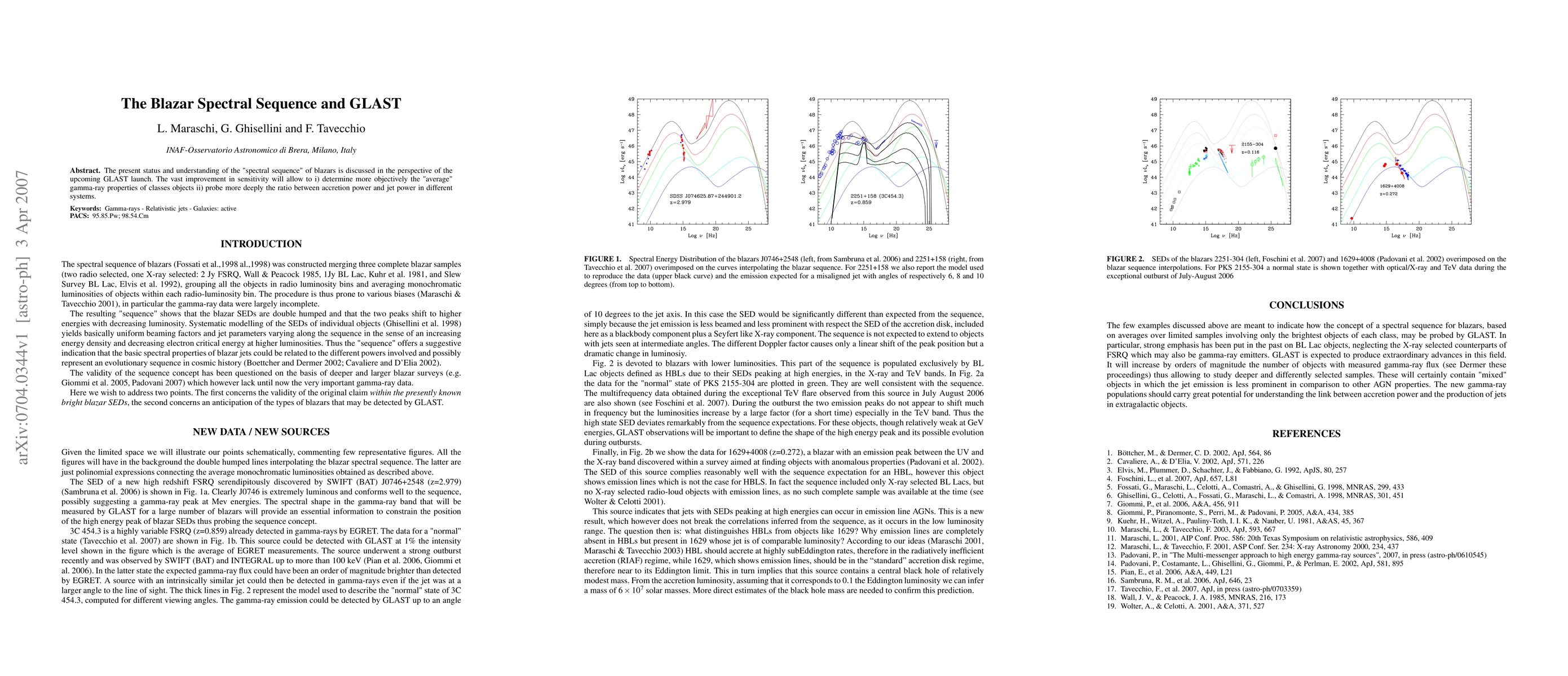 The present status and understanding of the "spectral sequence" of blazars is discussed in the perspective of the upcoming GLAST launch. The vast improvement in sensitivity will allow to i) determine more objectively the "average" gamma-ray properties of classes objects ii) probe more deeply the ratio between accretion power and jet power in different systems.