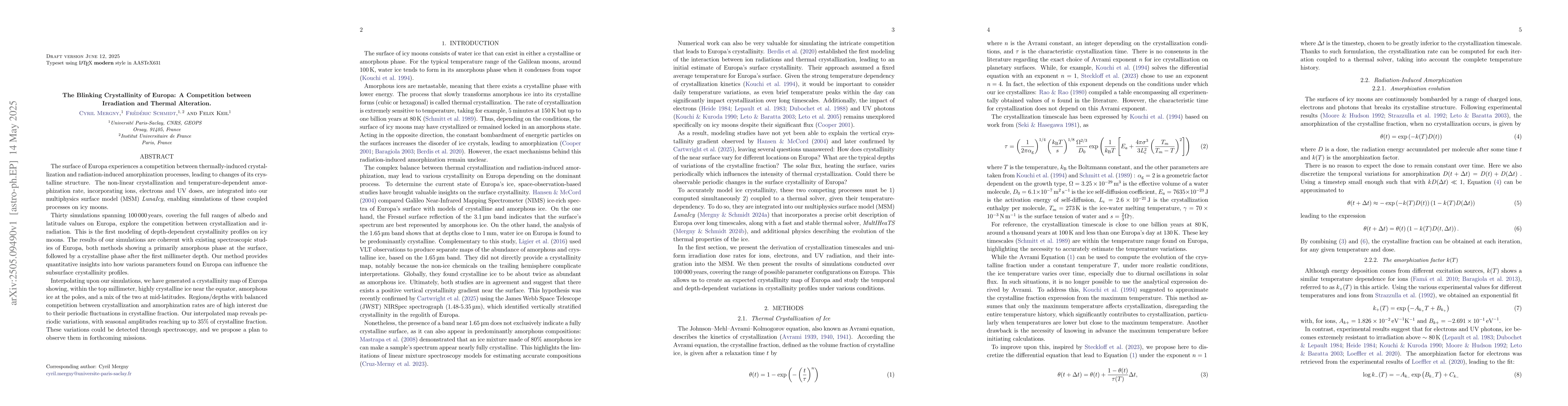 This research is the first to model and map the competition between thermally-induced crystallization and radiation-induced amorphization on Europa, offering new insights into its surface properties.