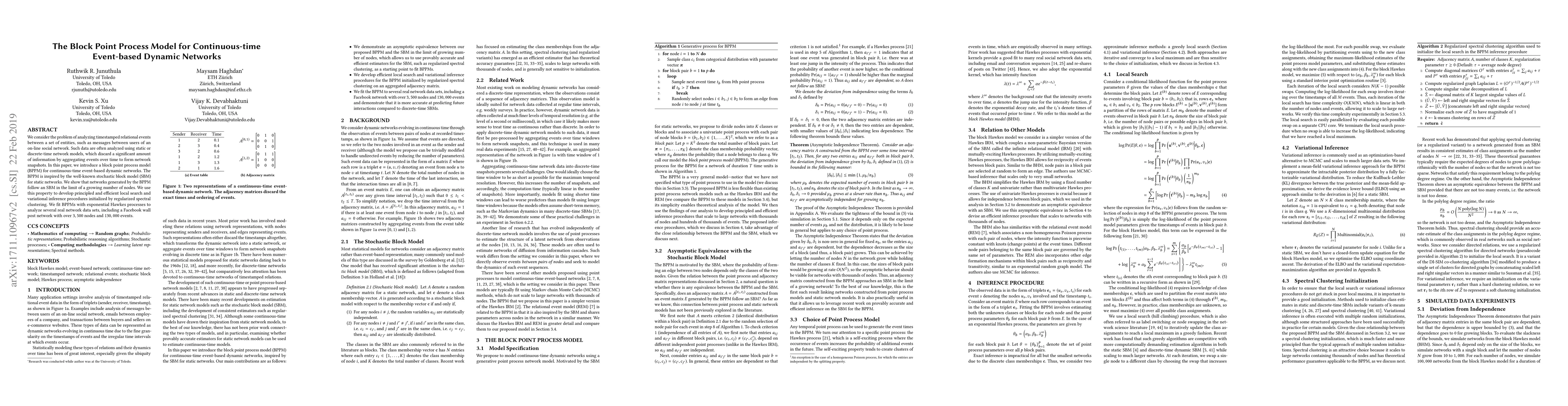 This paper introduces a block point process model (BPPM) for continuous-time dynamic networks, inspired by the stochastic block model for static networks. It demonstrates that BPPM-generated networks converge to an SBM as the number of nodes grows, enabling efficient local search and variational inference procedures.