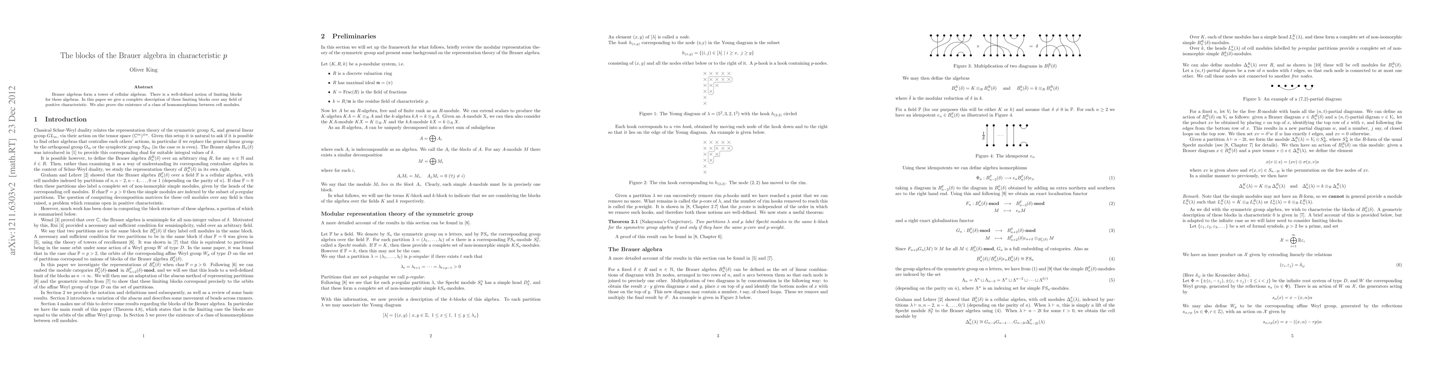 The paper introduces a detailed analysis of Brauer algebra blocks using cellular algebras and abacus moves, providing a rigorous framework for understanding limiting behavior in positive characteristic.