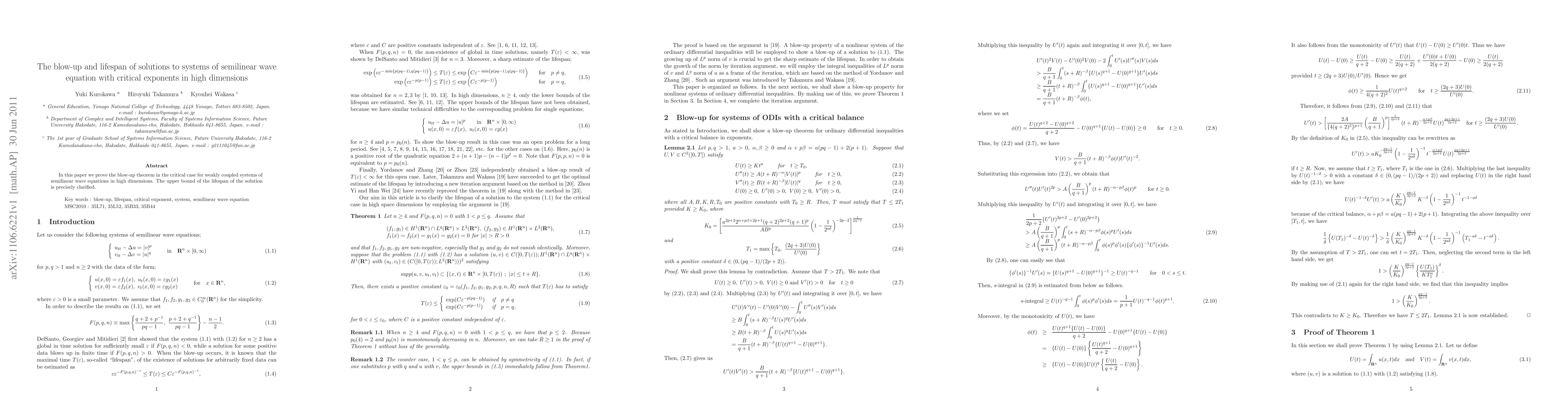 This paper establishes a blow-up theorem for weakly coupled systems of semilinear wave equations in high dimensions when critical exponents are involved, and provides a precise upper bound for the lifespan of the solutions.