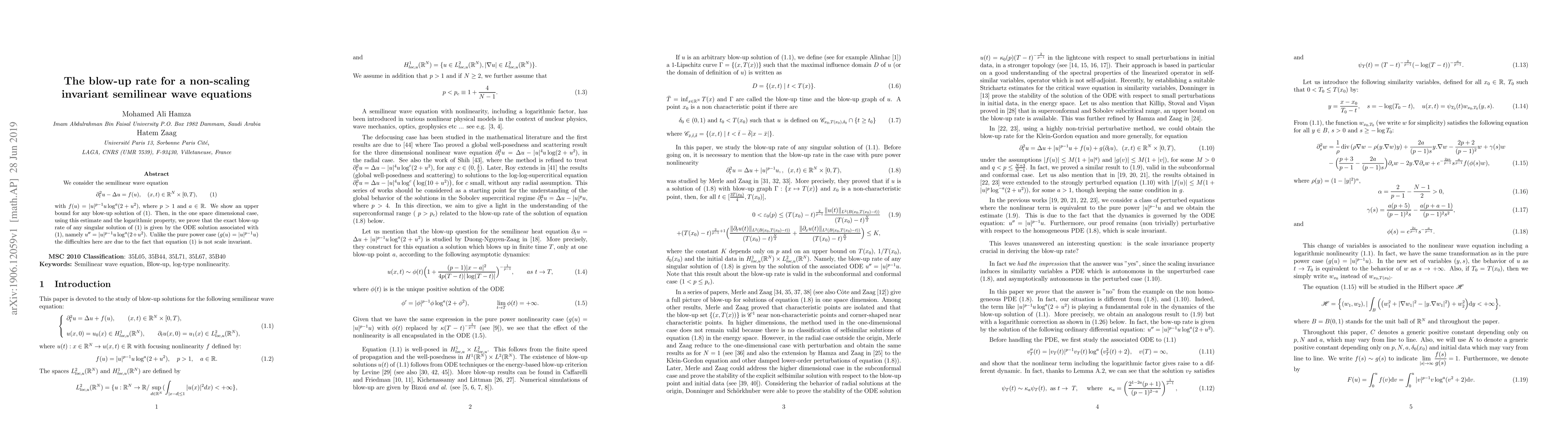 We consider the semilinear wave equation $$\partial_t^2 u -\Delta u =f(u), \quad (x,t)\in \mathbb{R}^N\times [0,T),\qquad (1)$$ with $f(u)=|u|^{p-1}u\log^a (2+u^2)$, where $p>1$ and $a\in \mathbb{R}$. We show an upper bound for any blow-up solution of (1). Then, in the one space dimensional case, using this estimate and the logarithmic property, we prove that the exact blow-up rate of any singular solution of (1) is given by the ODE solution associated with $(1)$, namely $u'' =|u|^{p-1}u\log^a (2+u^2)$ Unlike the pure power case ($g(u)=|u|^{p-1}u$) the difficulties here are due to the fact that equation (1) is not scale invariant.