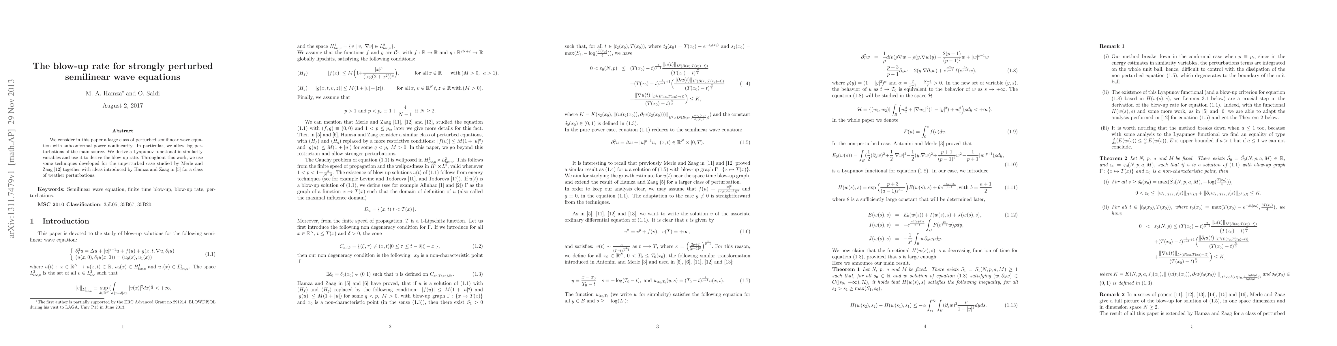 This paper investigates perturbed semilinear wave equations with subconformal power nonlinearity, deriving a Lyapunov functional to determine the blow-up rate. Techniques from both the unperturbed case and recent work on weather perturbations are employed to achieve this.
