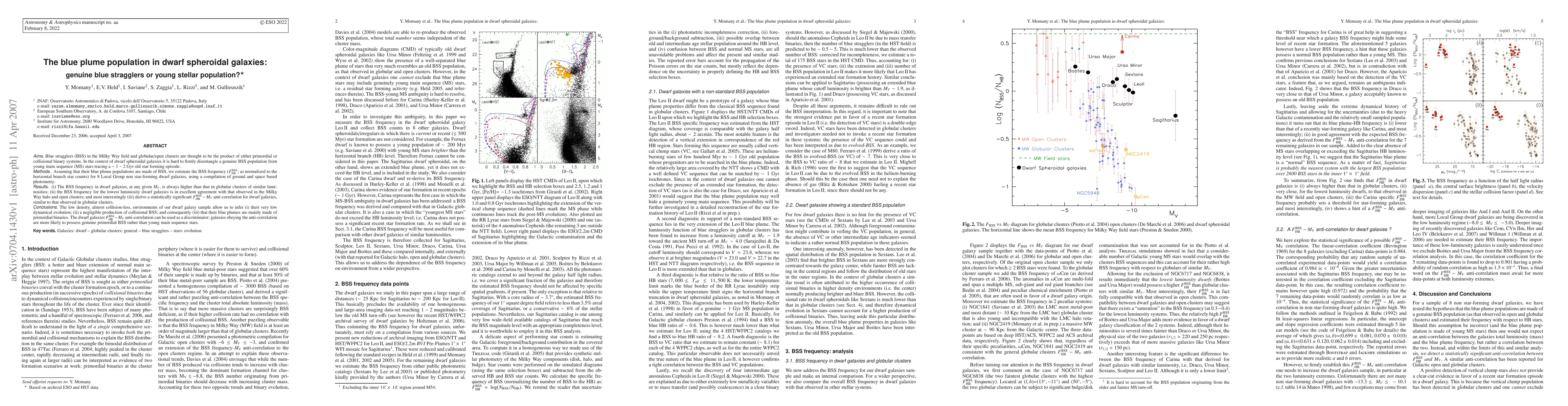 This paper investigates the nature of blue plume populations in dwarf spheroidal galaxies, finding that their higher blue straggler star (BSS) frequency compared to globular clusters suggests primordial origins rather than young stellar populations. The study reveals an anti-correlation between BSS frequency and galaxy luminosity, indicating that genuine BSS are more likely in galaxies following this trend.
