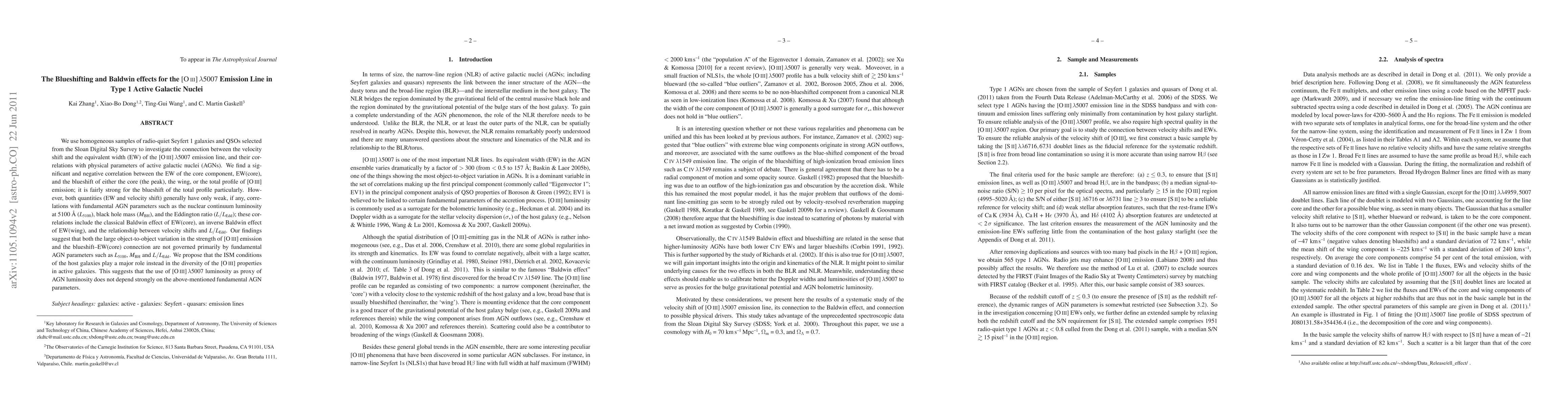 We use homogeneous samples of radio-quiet Seyfert 1 galaxies and QSOs selected from the Sloan Digital Sky Survey to investigate the connection between the velocity shift and the equivalent width (EW) of the [OIII] 5007 emission line, and their correlations with physical parameters of active galactic nuclei (AGNs). We find a significant and negative correlation between the EW of the core component, EW(core), and the blueshift of either the core (the peak), the wing, or the total profile of [OIII] emission; it is fairly strong for the blueshift of the total profile particularly. However, both quantities (EW and velocity shift) generally have only weak, if any, correlations with fundamental AGN parameters such as the nuclear continuum luminosity at 5100 L_{5100}, black hole mass (M_{BH}), and the Eddington ratio (L/L_{Edd}); these correlations include the classical Baldwin effect of EW(core), an inverse Baldwin effect of EW(wing), and the relationship between velocity shifts and \lratio. Our findings suggest that both the large object-to-object variation in the strength of [OIII] emission and the blueshift--EW(core) connection are not governed primarily by fundamental AGN parameters such as L_{5100}, M_{BH} and L/L_{Edd}. We propose that the ISM conditions of the host galaxies play a major role instead in the diversity of the [OIII] properties in active galaxies. This suggests that the use of[OIII] 5007 luminosity as proxy of AGN luminosity does not depend strongly on the above-mentioned fundamental AGN parameters.