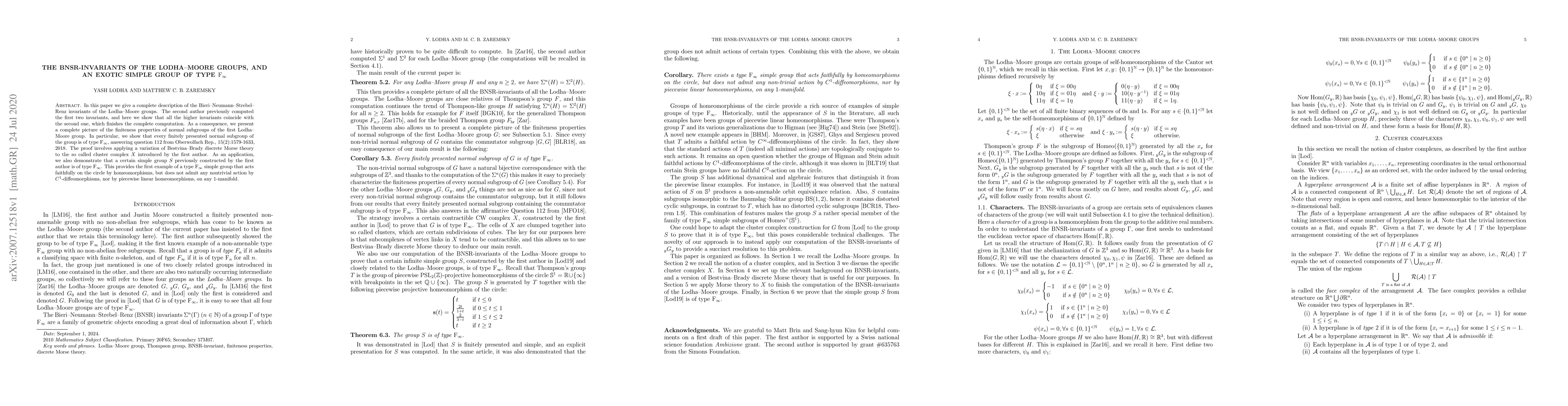 In this paper we give a complete description of the Bieri-Neumann-Strebel-Renz invariants of the Lodha-Moore groups. The second author previously computed the first two invariants, and here we show that all the higher invariants coincide with the second one, which finishes the complete computation. As a consequence, we present a complete picture of the finiteness properties of normal subgroups of the first Lodha-Moore group. In particular, we show that every finitely presented normal subgroup of the group is of type $\textrm{F}_\infty$, answering question 112 from Oberwolfach Rep., 15(2):1579-1633, 2018. The proof involves applying a variation of Bestvina-Brady discrete Morse theory to the so called cluster complex $X$ introduced by the first author. As an application, we also demonstrate that a certain simple group $S$ previously constructed by the first author is of type $\textrm{F}_\infty$. This provides the first example of a type $\textrm{F}_\infty$ simple group that acts faithfully on the circle by homeomorphisms, but does not admit any nontrivial action by $C^1$-diffeomorphisms, nor by piecewise linear homeomorphisms, on any $1$-manifold.