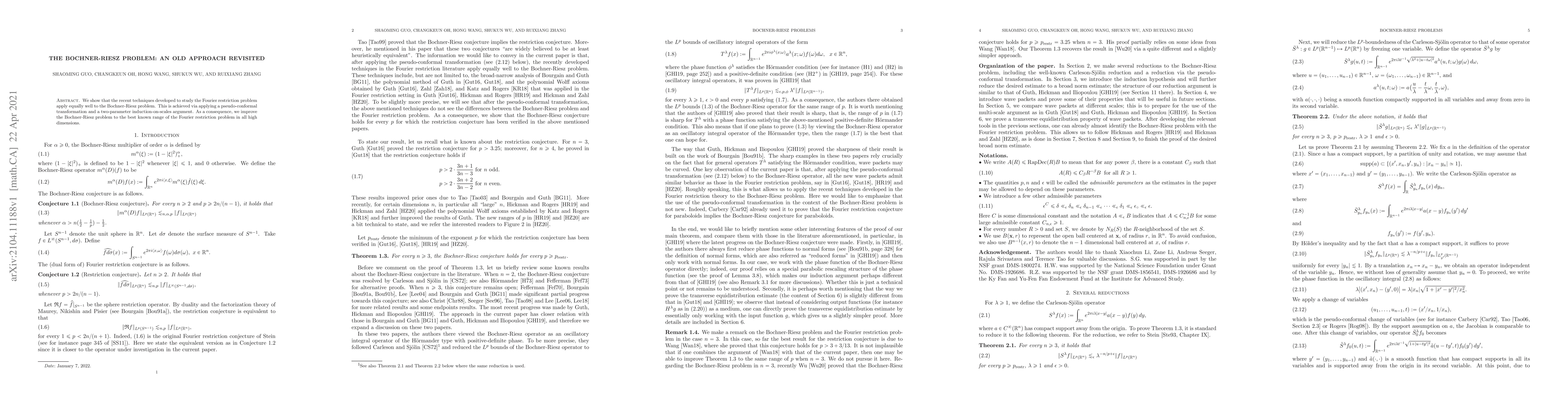 This paper demonstrates that recent techniques for the Fourier restriction problem can be effectively applied to the Bochner-Riesz problem using a pseudo-conformal transformation and a two-parameter induction-on-scales argument, resulting in improved results for the Bochner-Riesz problem in high dimensions.