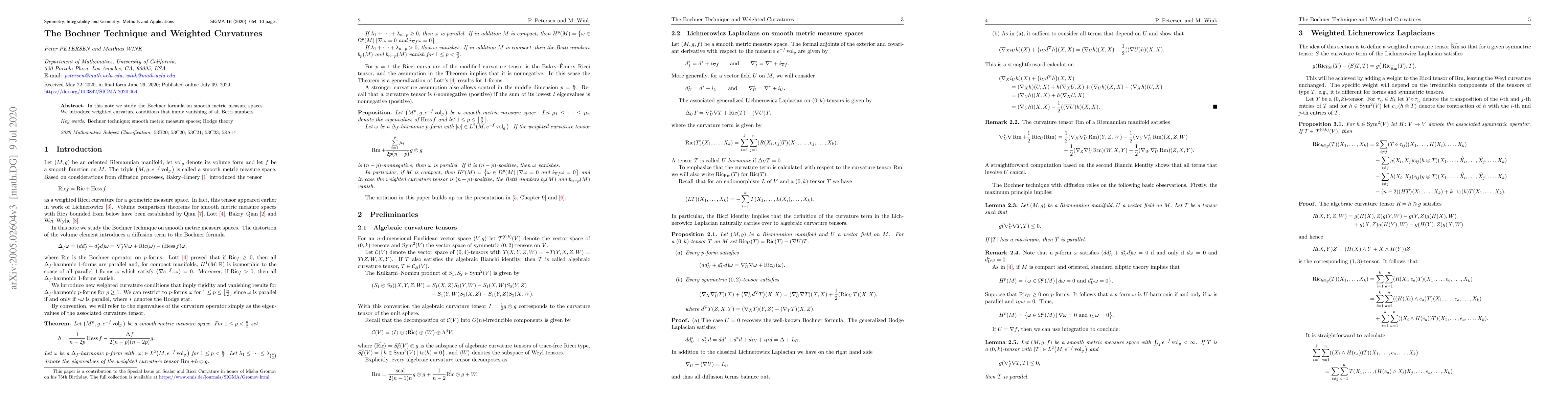 This research introduces weighted curvature conditions in smooth metric measure spaces using the Bochner formula. It demonstrates that these conditions result in the vanishing of all Betti numbers.