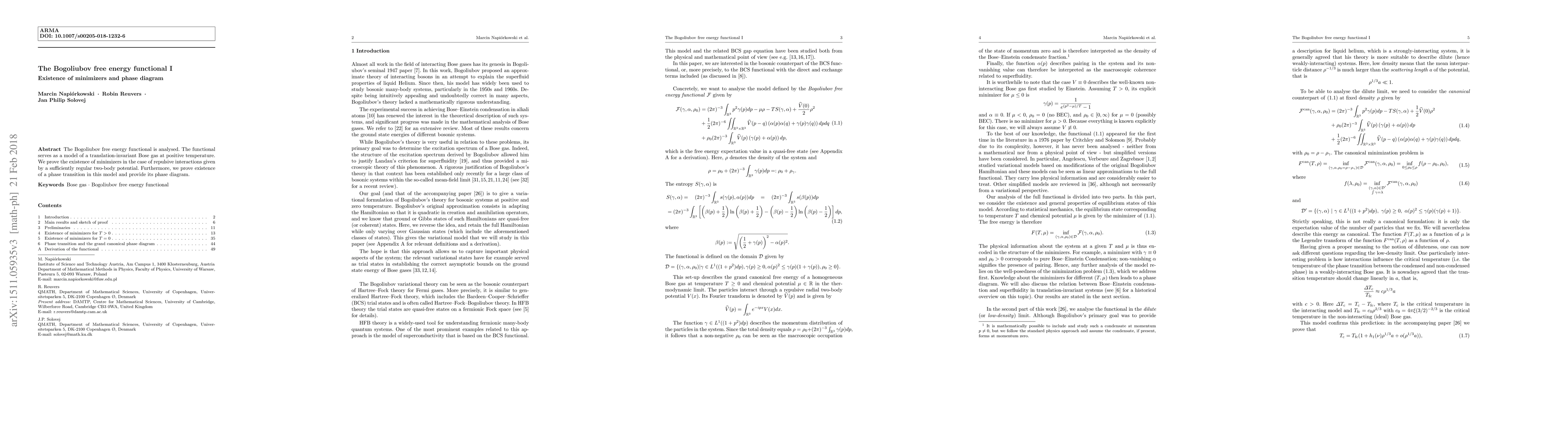 This paper proves the existence of minimizers for the Bogoliubov free energy functional, which models a translation invariant Bose gas at positive temperature, under repulsive interactions. It also demonstrates the occurrence of a phase transition and presents the corresponding phase diagram.