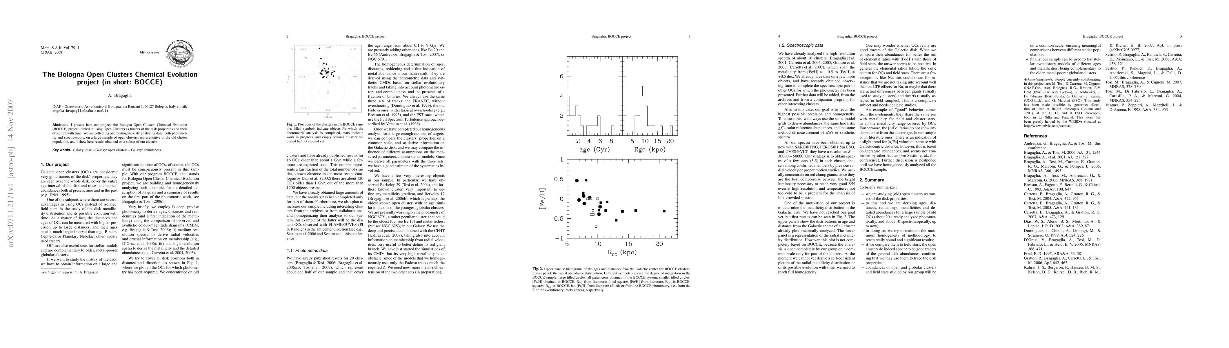 The BOCCE project aims to use open clusters to trace the chemical evolution of the disk and its changes over time. Initial results from a subset of analyzed clusters provide insights into the old cluster population's properties.