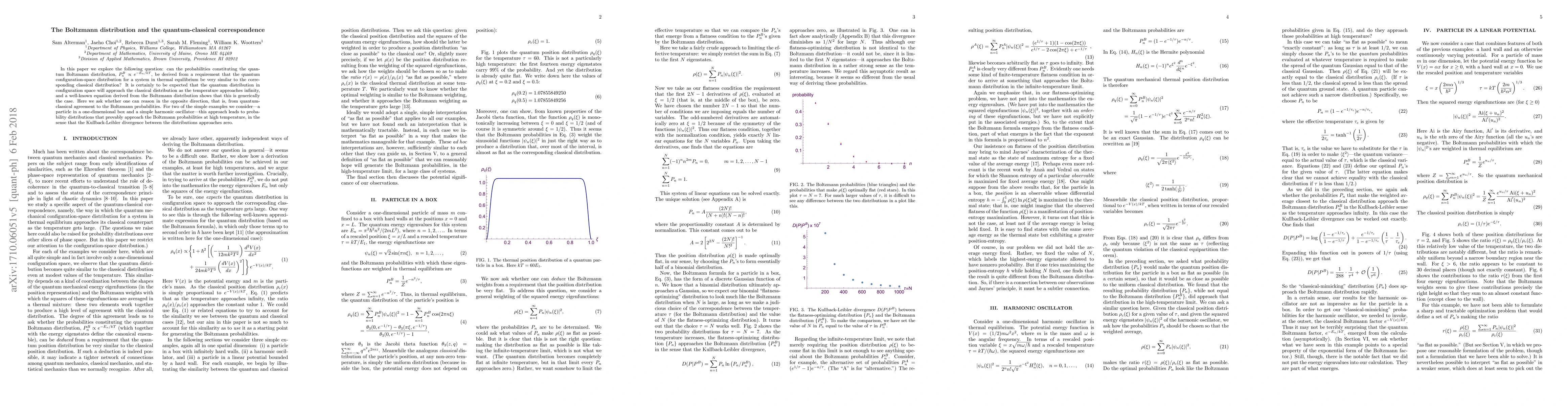 Researchers explore the possibility of deriving quantum Boltzmann distribution probabilities from a requirement that quantum configuration-space distributions match classical ones at high temperatures.